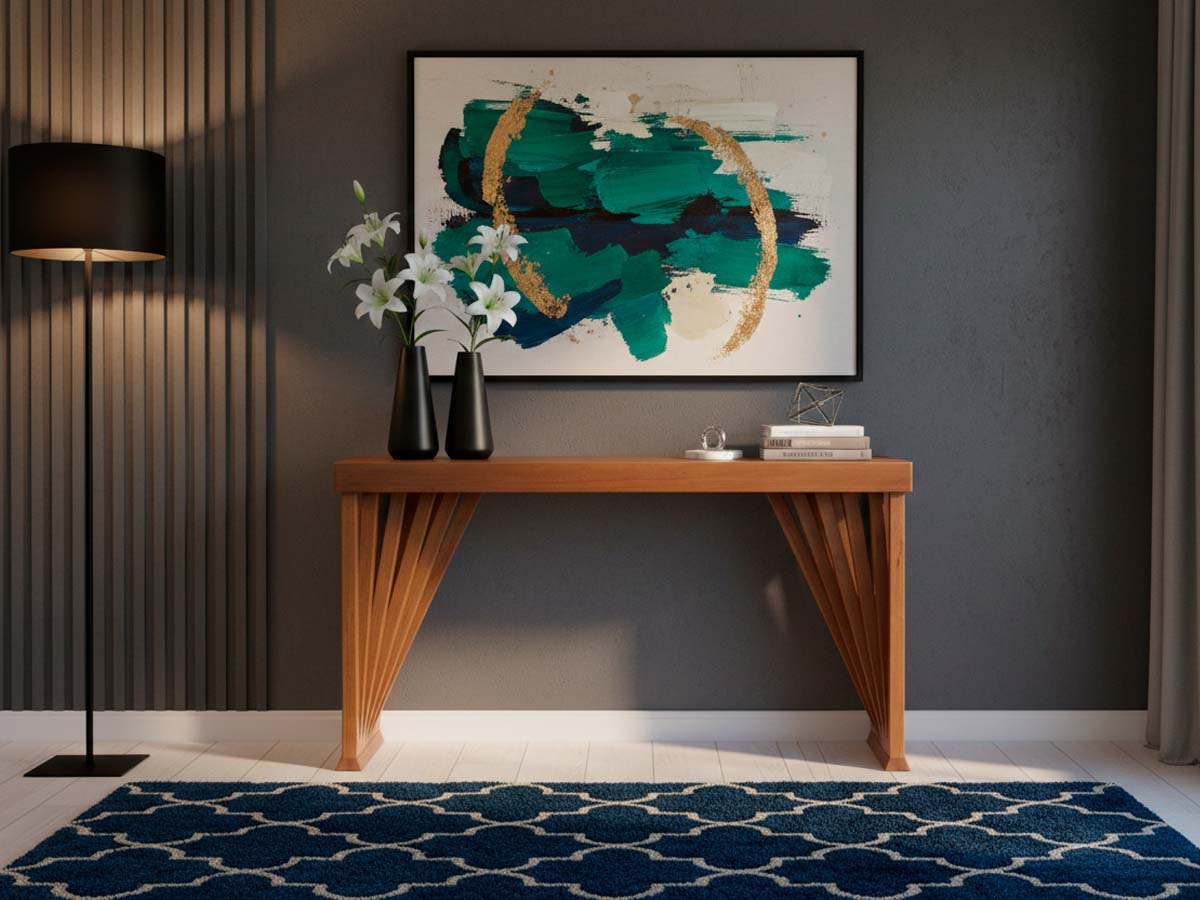 Aparador vitória 122 x 80 X 41 cm com base em madeira ripada. Eleve a sofisticação do seu ambiente com o Aparador Vitória. Com 1,20m de largura, esta peça é a escolha ideal para quem busca um móvel funcional que também funcione como uma obra de arte central em halls de entrada, salas de jantar ou corredores. O grande diferencial reside em sua base geométrica inspirada na arte da dobradura. As ripas de madeira convergem em um movimento dinâmico, criando um jogo de luz e sombra único. Seu estilo contemporâneo harmoniza facilmente com espelhos redondos, vasos orgânicos ou livros de arte, adaptando-se do estilo rústico chique ao moderno minimalista. Produto enviado montado.