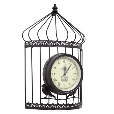 Relógio formato gaiola com pássaros em metal na cor preta. O relógio é utilizado como medidor do tempo desde a Antiguidade, em variados formatos. É uma das mais antigas invenções humanas. Entre os primeiros relógios que se tem conhecimento são os relógios de sol. A história registra que apareceu na Judeia, mais ou menos em 600 a.C., com os relógios de água (clepsidras) e os relógios de areia (ampulhetas). O arcebispo de Verona chamado Pacífico, em 850 d.C., construiu o primeiro relógio mecânico baseado em engrenagens e pesos.