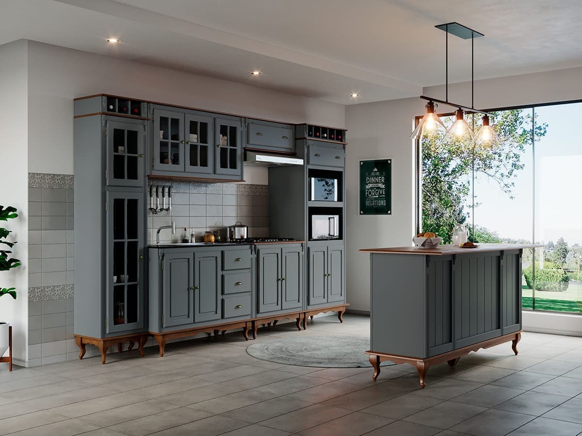 Mesa ilha Hanover 2 portas 95 x 132 x 70 cm (A x L x P). Mesa ilha de madeira com 2 portas, 1 gaveta e dois nichos otimizando o espaço e organização é ideal para compor a cozinha. A linha Hanover possui o design inspirado no estilo alemão, seus traços neoclássico chamam atenção e se destaca em qualquer decoração, conta com diversas opções de pintura e puxador em metal injetado. Estrutura com pintura laqueada e tampo e base na cor Imbuia Glazer. Possui 0,95 m de altura, 1,32 m de largura e 0,70 m de profundidade. A mesa ilha é enviada montada.