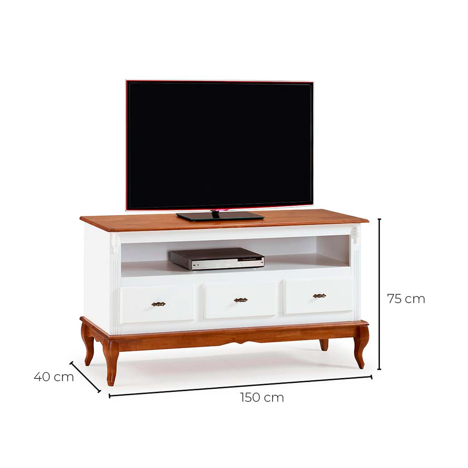 Rack Linz 3 gavetas 75 x 150 x 40 (A x L x P). O rack Linz é fabricado em matéria prima selecionada e de extrema qualidade. Seu design inspirado neoclássico traz classe e requinte ao ambiente. Cuidamos de cada detalhe para criar uma linha exclusiva e diferenciada, que possa ser combinada com diferentes estilos de decoração. Para você que está pensando em redecorar seu espaço, as peças desta linha com certeza são indispensáveis. O rack Linz conta com diversas opções de pintura, três gavetas, um nicho e pés Luis XV. Possui 0,75 m de altura por 1,50 m de largura e 0,40 m de profundidade. O rack de madeira Linz é enviado montado.