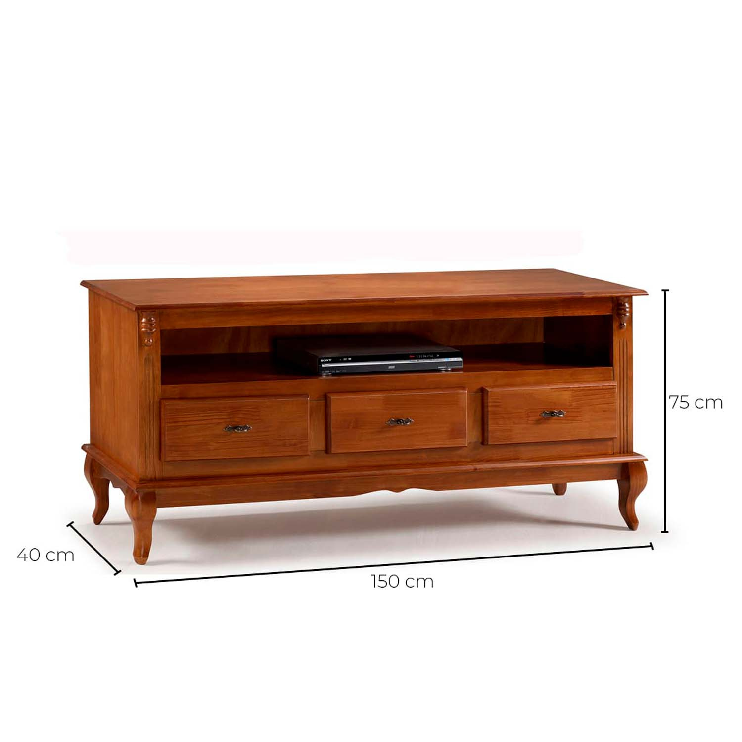 Rack Linz 3 gavetas 75 x 150 x 40 (A x L x P). O rack Linz é fabricado em matéria prima selecionada e de extrema qualidade. Seu design inspirado neoclássico traz classe e requinte ao ambiente. Cuidamos de cada detalhe para criar uma linha exclusiva e diferenciada, que possa ser combinada com diferentes estilos de decoração. Para você que está pensando em redecorar seu espaço, as peças desta linha com certeza são indispensáveis. O rack Linz conta com diversas opções de pintura, três gavetas, um nicho e pés Luis XV. Possui 0,75 m de altura por 1,50 m de largura e 0,40 m de profundidade. O rack de madeira Linz é enviado montado.
