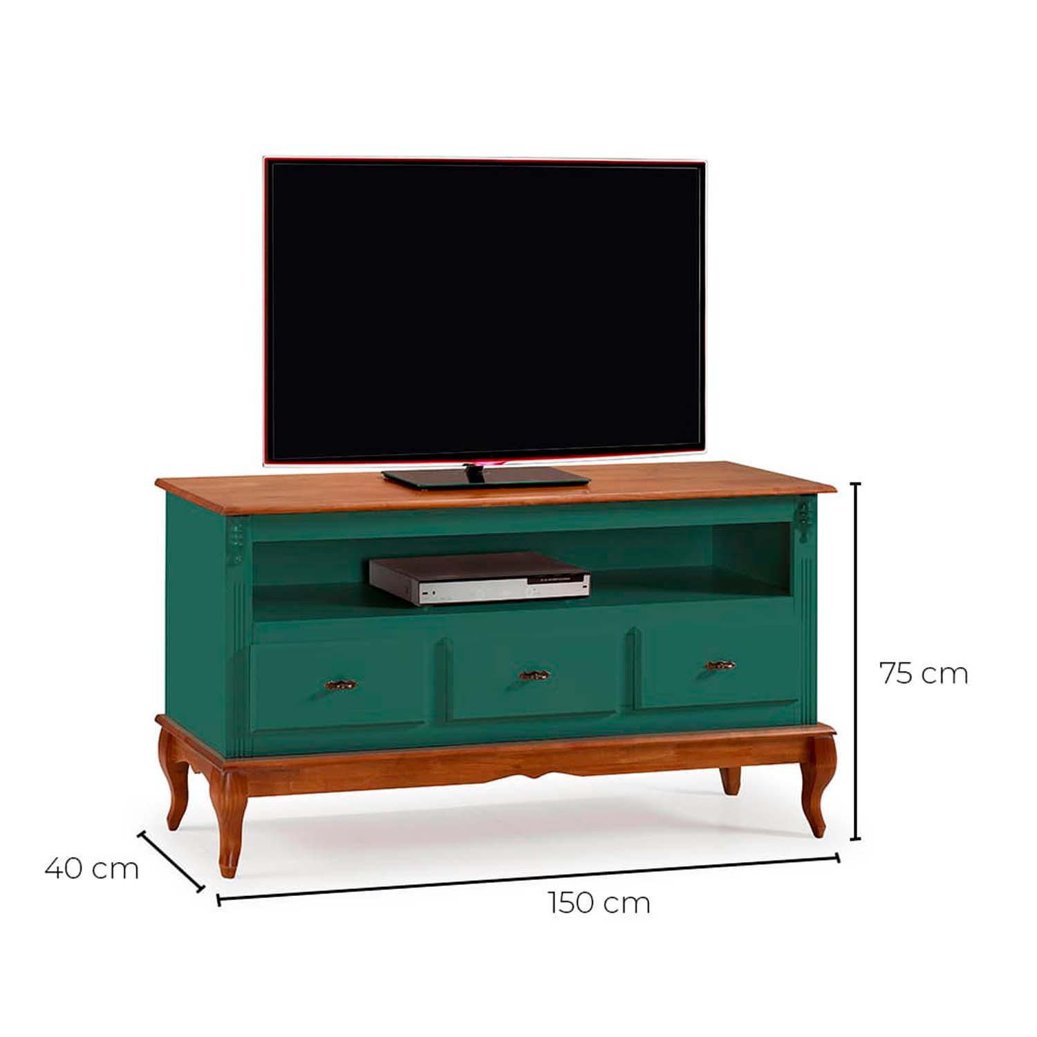 Rack Linz 3 gavetas 75 x 150 x 40 (A x L x P). O rack Linz é fabricado em matéria prima selecionada e de extrema qualidade. Seu design inspirado neoclássico traz classe e requinte ao ambiente. Cuidamos de cada detalhe para criar uma linha exclusiva e diferenciada, que possa ser combinada com diferentes estilos de decoração. Para você que está pensando em redecorar seu espaço, as peças desta linha com certeza são indispensáveis. O rack Linz conta com diversas opções de pintura, três gavetas, um nicho e pés Luis XV. Possui 0,75 m de altura por 1,50 m de largura e 0,40 m de profundidade. O rack de madeira Linz é enviado montado.
