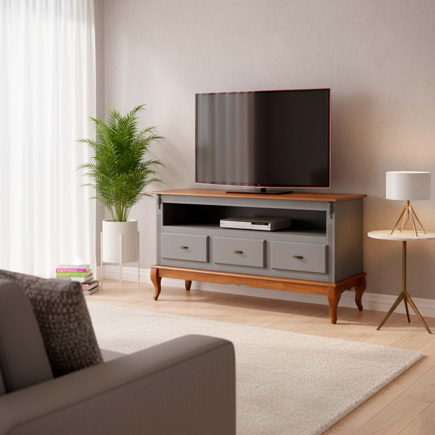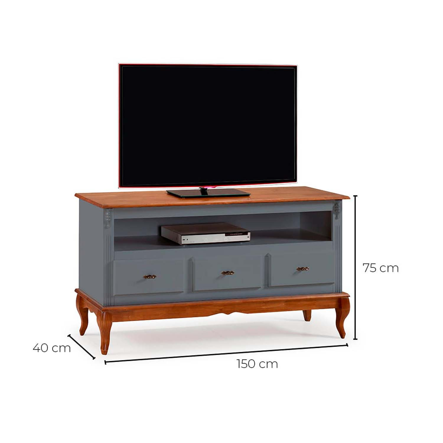 Rack Linz 3 gavetas 75 x 150 x 40 (A x L x P). O rack Linz é fabricado em matéria prima selecionada e de extrema qualidade. Seu design inspirado neoclássico traz classe e requinte ao ambiente. Cuidamos de cada detalhe para criar uma linha exclusiva e diferenciada, que possa ser combinada com diferentes estilos de decoração. Para você que está pensando em redecorar seu espaço, as peças desta linha com certeza são indispensáveis. O rack Linz conta com diversas opções de pintura, três gavetas, um nicho e pés Luis XV. Possui 0,75 m de altura por 1,50 m de largura e 0,40 m de profundidade. O rack de madeira Linz é enviado montado.
