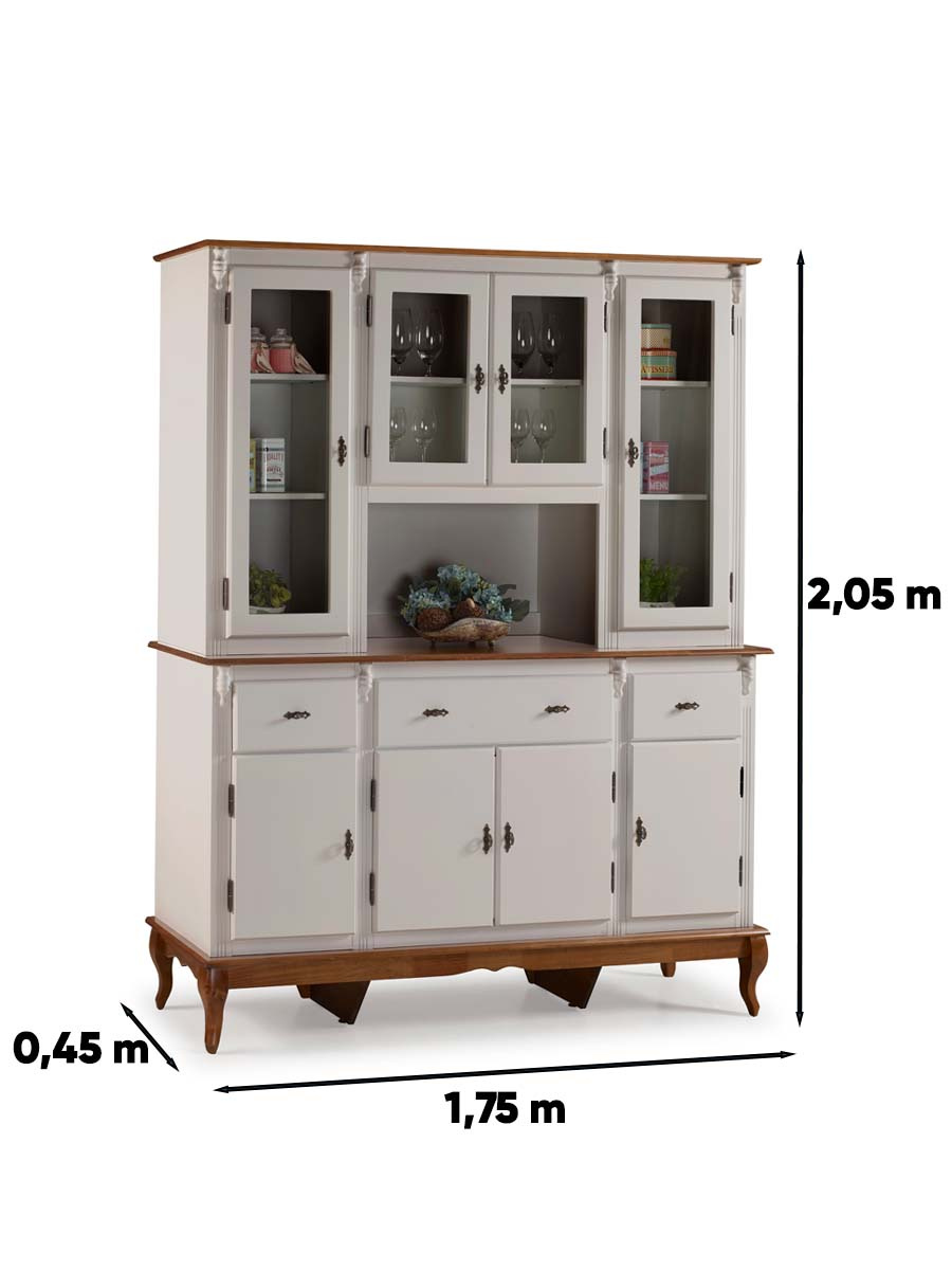 Arca Oratório Linz 4 portas 205 x 175 x 45 cm (A x L x P). A Arca e Oratório Linz é fabricada em matéria prima selecionada e de extrema qualidade. Seu design inspirado no estilo alemão traz classe e requinte ao ambiente. Cuidamos de cada detalhe para criar uma linha exclusiva e diferenciada, que possa ser combinada com diferentes estilos de decoração. Para você que está pensando em redecorar seu espaço, as peças desta linha com certeza são indispensáveis. A arca oratória possui quatro portas com vidro, quatro portas de madeira e três gavetas, é ideal para compor a cozinha. O produto conta com diversas opções de pintura. Possui 2,05 m de altura por 1,75 m de largura e 0,45 m de profundidade. A arca oratória é enviada semi montada.