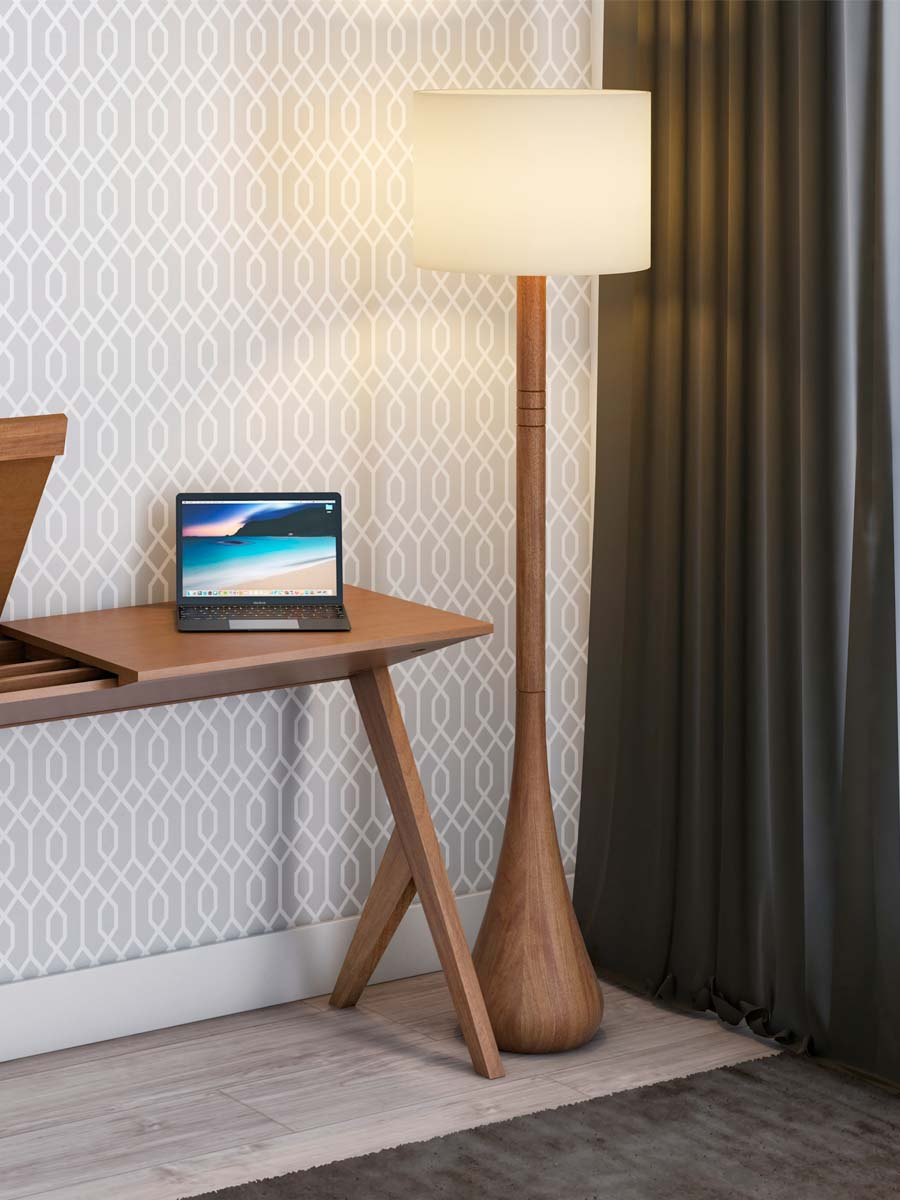 Luminária de chão Dubai 165 x 40 x 40 cm (A x L x P). A luminária de chão Dubai é fabricada em madeira de eucalipto e design sofisticado, trazendo leveza ao ambiente. Uma luminária prática e moderna seguindo um design que valoriza a madeira maciça. Para você que está pensando em redecorar seu espaço, a luminária com certeza é indispensável. Possui 1,65 m de altura por 0,40 m de largura e 0,40 m de profundidade. A luminária Dubai é enviada semi montada.