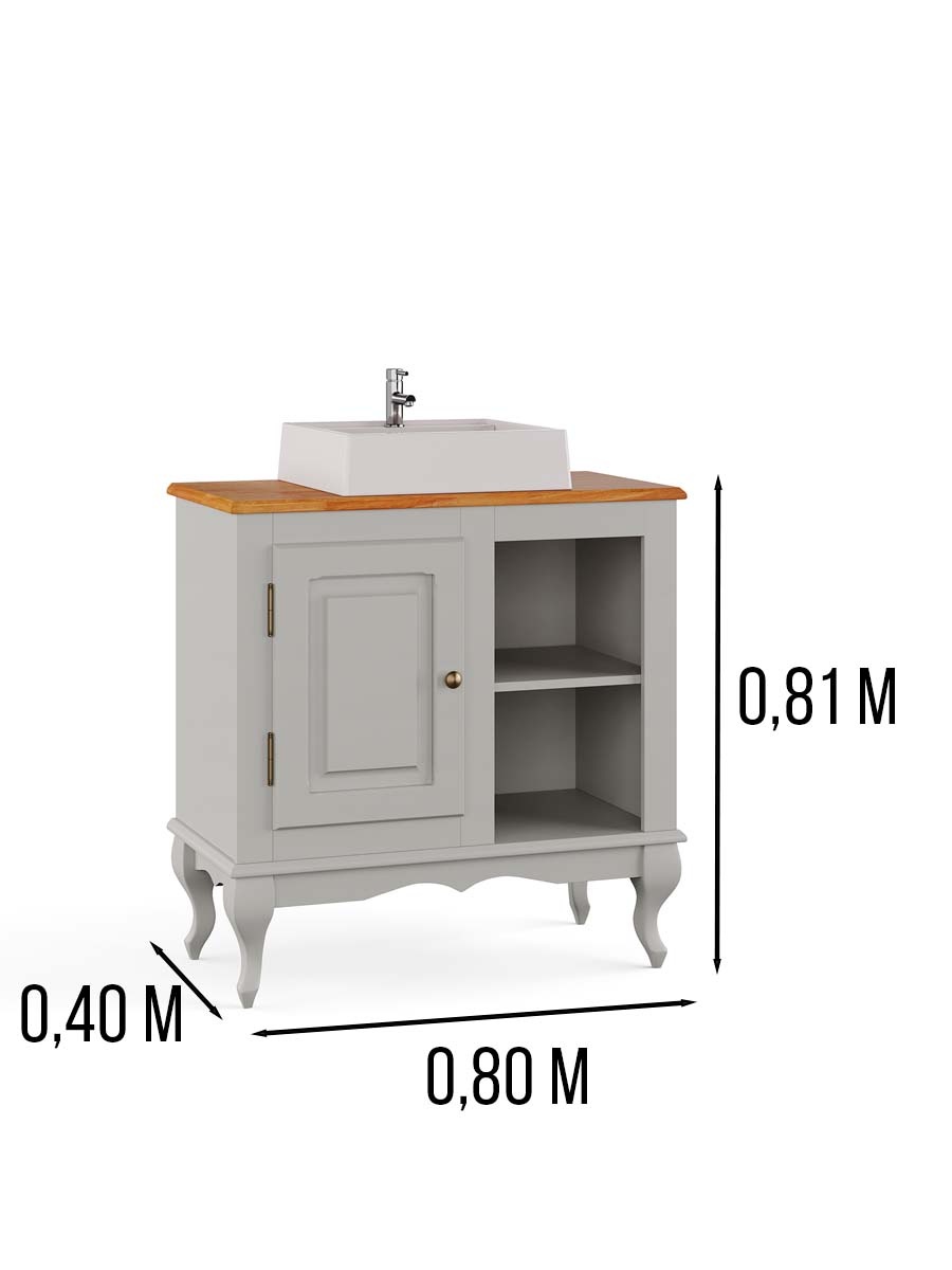 Balcão para banheiro com cuba pés Luis XV 1 porta 2 nichos Dalia 81 x 80 x 40 cm (A x L x P). Balcão de madeira possui uma porta, dois nichos e pés Luis XV é ideal para compor o banheiro, acompanha a cuba. Estrutura com pintura laqueada podendo ser personalizável. Cuidamos de cada detalhe para criar uma linha exclusiva e diferenciada, que possa ser combinada com diferentes estilos de decoração. Para você que está pensando em redecorar seu espaço, as peças desta linha com certeza são indispensáveis. Possui 0,81 m de altura por 0,80 m de largura e 0,40 m de profundidade. A balcão é enviado montado.