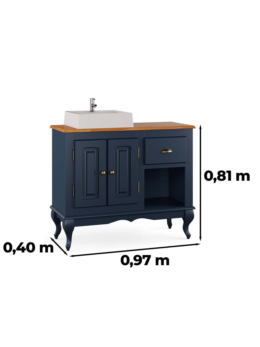 Balcão para banheiro com cuba pés Luis XV 2 portas 1 gaveta 1 nicho Dalia 81 x 97 x 40 cm (A x L x P). Balcão de madeira possui duas portas, uma gaveta e um nichos e pés Luis XV é ideal para compor o banheiro, acompanha a cuba. Estrutura com pintura laqueada podendo ser personalizável. Cuidamos de cada detalhe para criar uma linha exclusiva e diferenciada, que possa ser combinada com diferentes estilos de decoração. Para você que está pensando em redecorar seu espaço, as peças desta linha com certeza são indispensáveis. Possui 0,81 m de altura por 0,97 m de largura e 0,40 m de profundidade. A balcão é enviado montado.