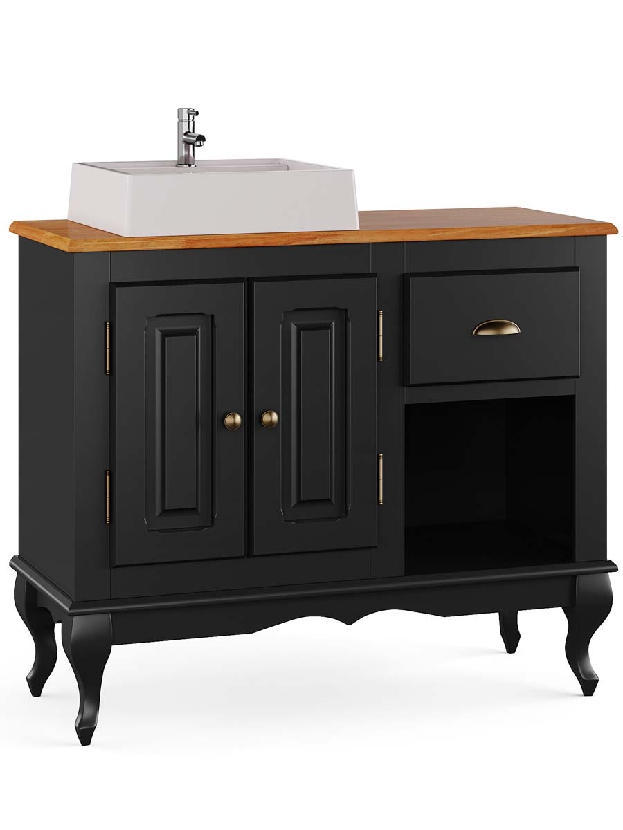 Balcão para banheiro com cuba e espelho pés Luis XV 2 portas 1 gaveta 1 nicho Dalia 81 x 97 x 40 cm (A x L x P). Balcão de madeira possui duas portas, uma gaveta e um nichos e pés Luis XV é ideal para compor o banheiro, acompanha a cuba. Estrutura com pintura laqueada podendo ser personalizável. Cuidamos de cada detalhe para criar uma linha exclusiva e diferenciada, que possa ser combinada com diferentes estilos de decoração. Para você que está pensando em redecorar seu espaço, as peças desta linha com certeza são indispensáveis. Possui 0,81 m de altura por 0,97 m de largura e 0,40 m de profundidade. A balcão é enviado montado.