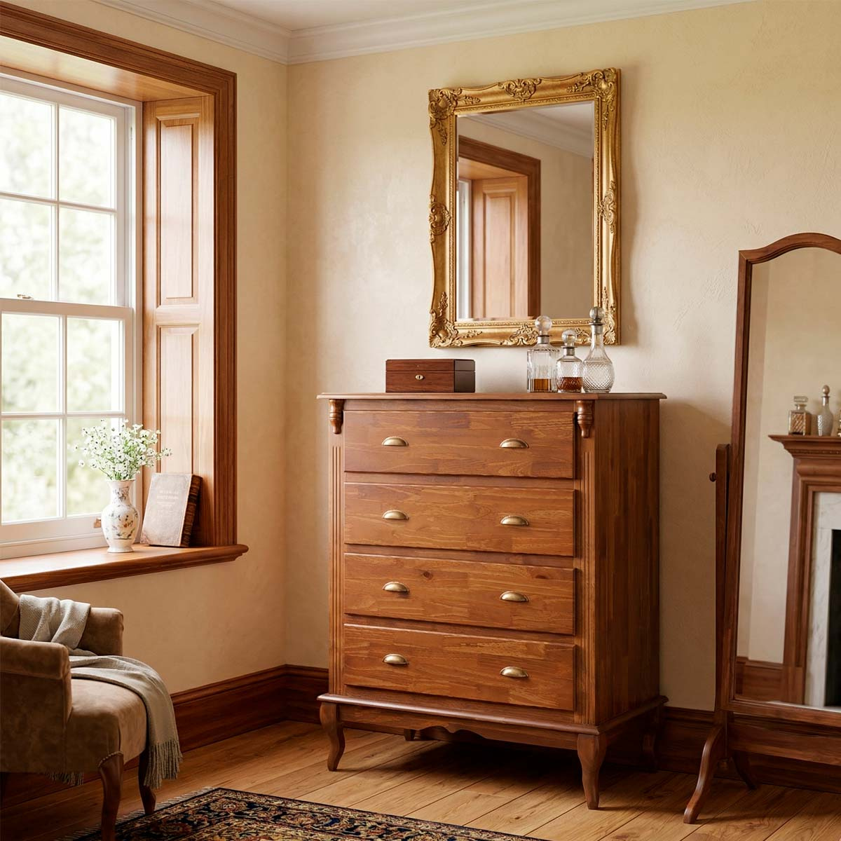 Cômoda Hanover 4 gavetas Pés Luis XV 116 x 90 x 50 cm (A x L x P). Cômoda Linz com pés Luis XV, esta linha é perfeita para dar um upgrade na decoração de seu quarto, suas peças além de serem super versáteis e funcionais, contam com gavetas que facilitam muito o dia a dia e a organização de itens como roupas, livros, roupas de cama e outros, possuem também um design elegante agregando mais sofisticação ao ambiente. São móveis de extrema resistência e durabilidade produzidos em materiais de excelente qualidade. Possui 1,16 m de altura por 0,90 m de largura e 0,50 m de profundidade. A cômoda Linz é enviada montada.