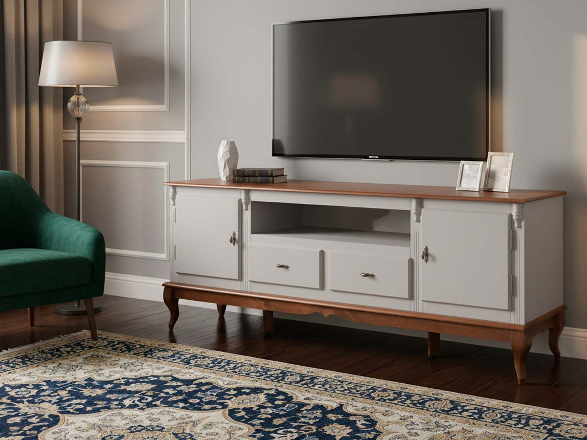 Rack Linz 2 Portas Madeira 2 Gavetas Pés Luis XV 75 x 195 x 40 cm (A x L x P). O rack Linz é fabricado em matéria prima selecionada e de extrema qualidade. Seu design inspirado neoclássico traz classe e requinte ao ambiente. Cuidamos de cada detalhe para criar uma linha exclusiva e diferenciada, que possa ser combinada com diferentes estilos de decoração. Para você que está pensando em redecorar seu espaço, as peças desta linha com certeza são indispensáveis. O rack hanover conta com diversas opções de pintura, pés Luis XV, duas portas, duas gavetas e um nicho. Possui 0,75 m de altura por 1,95 m de largura e 0,40 m de profundidade. O rack de madeira hanover é enviado montado.