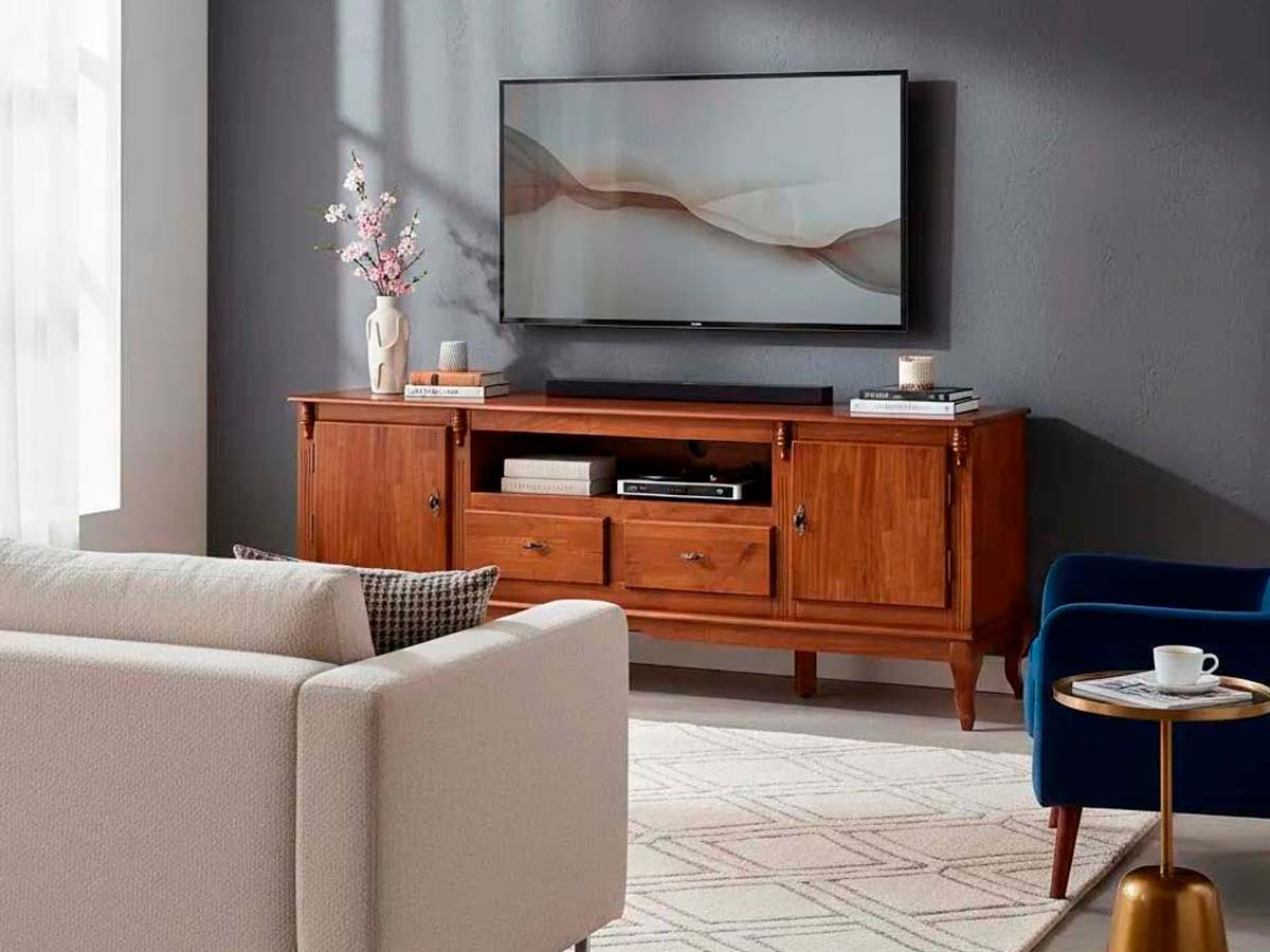 Rack Linz 2 Portas Madeira 2 Gavetas Pés Luis XV 75 x 195 x 40 cm (A x L x P). O rack Linz é fabricado em matéria prima selecionada e de extrema qualidade. Seu design inspirado neoclássico traz classe e requinte ao ambiente. Cuidamos de cada detalhe para criar uma linha exclusiva e diferenciada, que possa ser combinada com diferentes estilos de decoração. Para você que está pensando em redecorar seu espaço, as peças desta linha com certeza são indispensáveis. O rack hanover conta com diversas opções de pintura, pés Luis XV, duas portas, duas gavetas e um nicho. Possui 0,75 m de altura por 1,95 m de largura e 0,40 m de profundidade. O rack de madeira hanover é enviado montado.