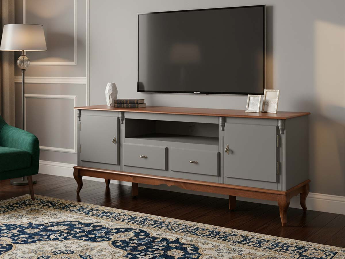 Rack Linz 2 Portas Madeira 2 Gavetas Pés Luis XV 75 x 195 x 40 cm (A x L x P). O rack Linz é fabricado em matéria prima selecionada e de extrema qualidade. Seu design inspirado neoclássico traz classe e requinte ao ambiente. Cuidamos de cada detalhe para criar uma linha exclusiva e diferenciada, que possa ser combinada com diferentes estilos de decoração. Para você que está pensando em redecorar seu espaço, as peças desta linha com certeza são indispensáveis. O rack hanover conta com diversas opções de pintura, pés Luis XV, duas portas, duas gavetas e um nicho. Possui 0,75 m de altura por 1,95 m de largura e 0,40 m de profundidade. O rack de madeira hanover é enviado montado.
