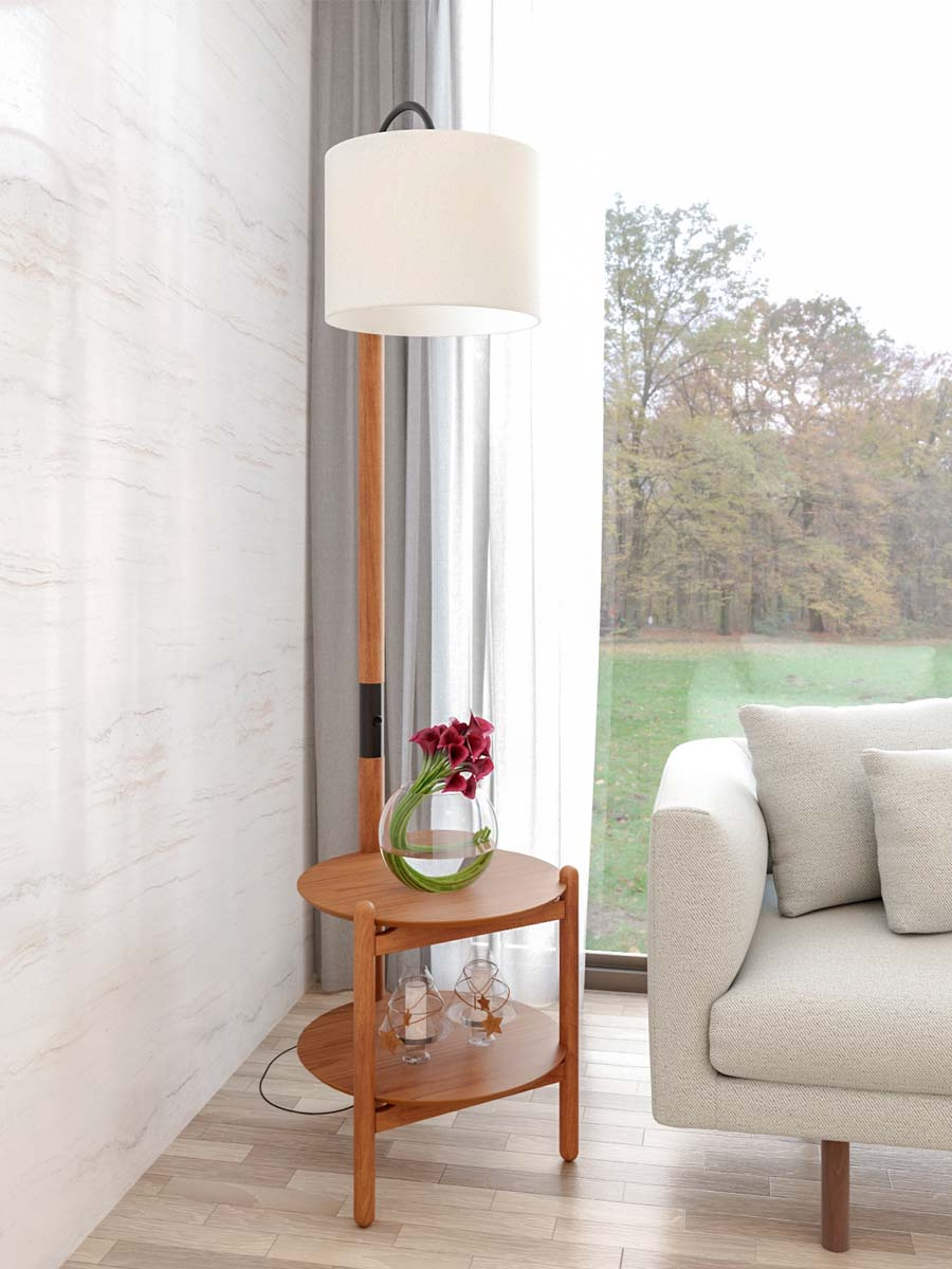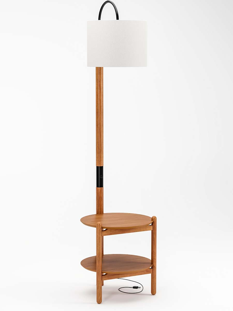 Luminária de chão Agatha com mesa auxiliar 200 x 50 x 52 cm (A x L x P). A luminária de chão Agatha é possui estrutura em madeira de eucalipto e tampo em MDF laminado em madeira de cinamo, seguindo um design que valoriza a madeira maciça. Seu design moderno leve e moderno combina em qualquer ambiente da sua casa. Para você que está pensando em redecorar seu espaço, a luminária com certeza é indispensável. Possui 2,00 m de altura por 0,50 m de largura e 0,52 m de profundidade. A luminária Agatha é enviada semi montada.