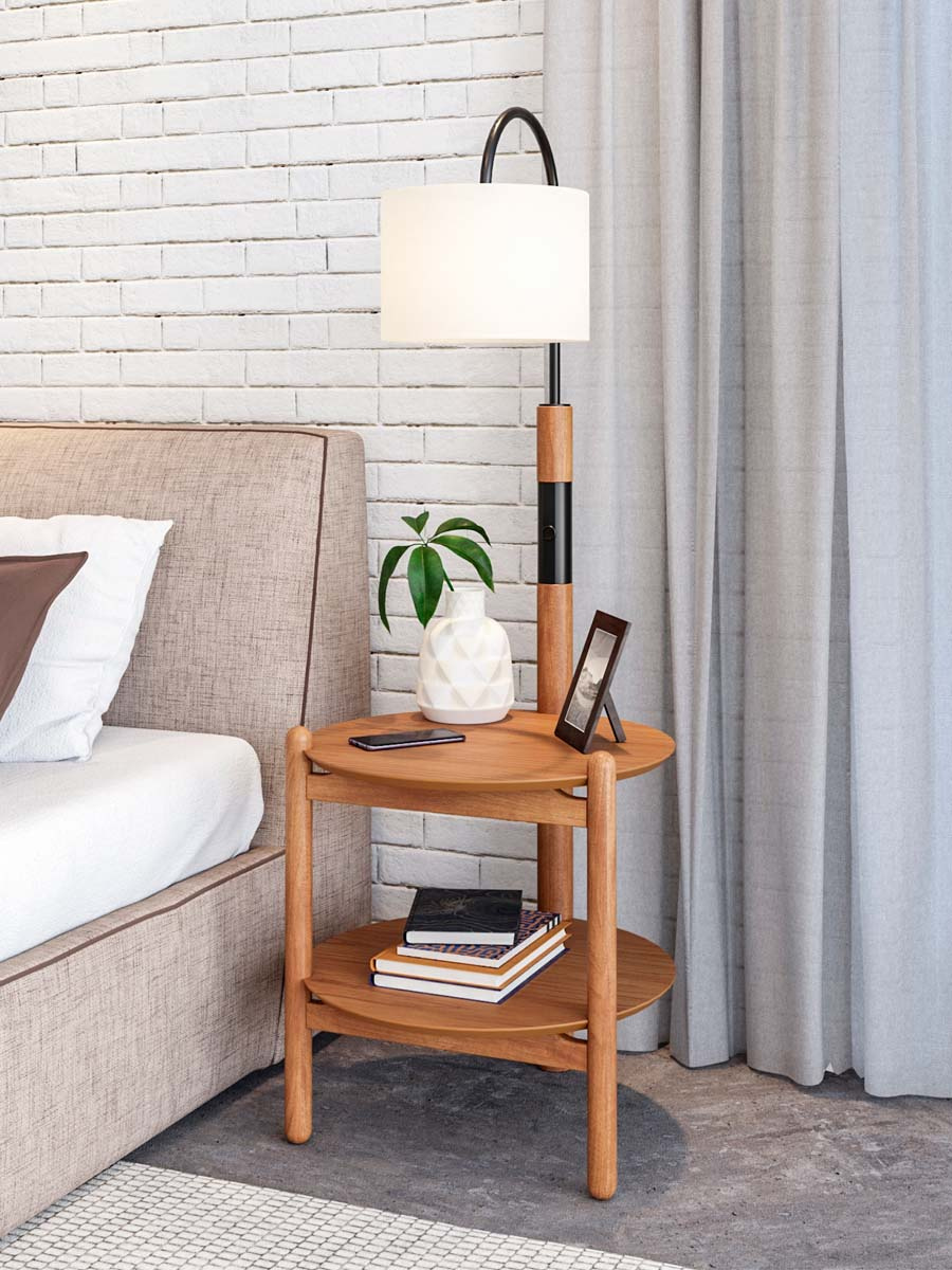 Mesa de cabeceira com luminária Agatha 140 x 50 x 52 cm (A x L x P). A mesa de cabeceira com luminária Agatha possui estrutura em madeira de eucalipto e tampo em MDF laminado em madeira de cinamo, seguindo um design que valoriza a madeira maciça. Seu design moderno leve e moderno combina em qualquer ambiente da sua casa. Para você que está pensando em redecorar seu espaço, a luminária com certeza é indispensável. Possui 1,40 m de altura por 0,50 m de largura e 0,52 m de profundidade. A luminária Agatha é enviada semi montada.