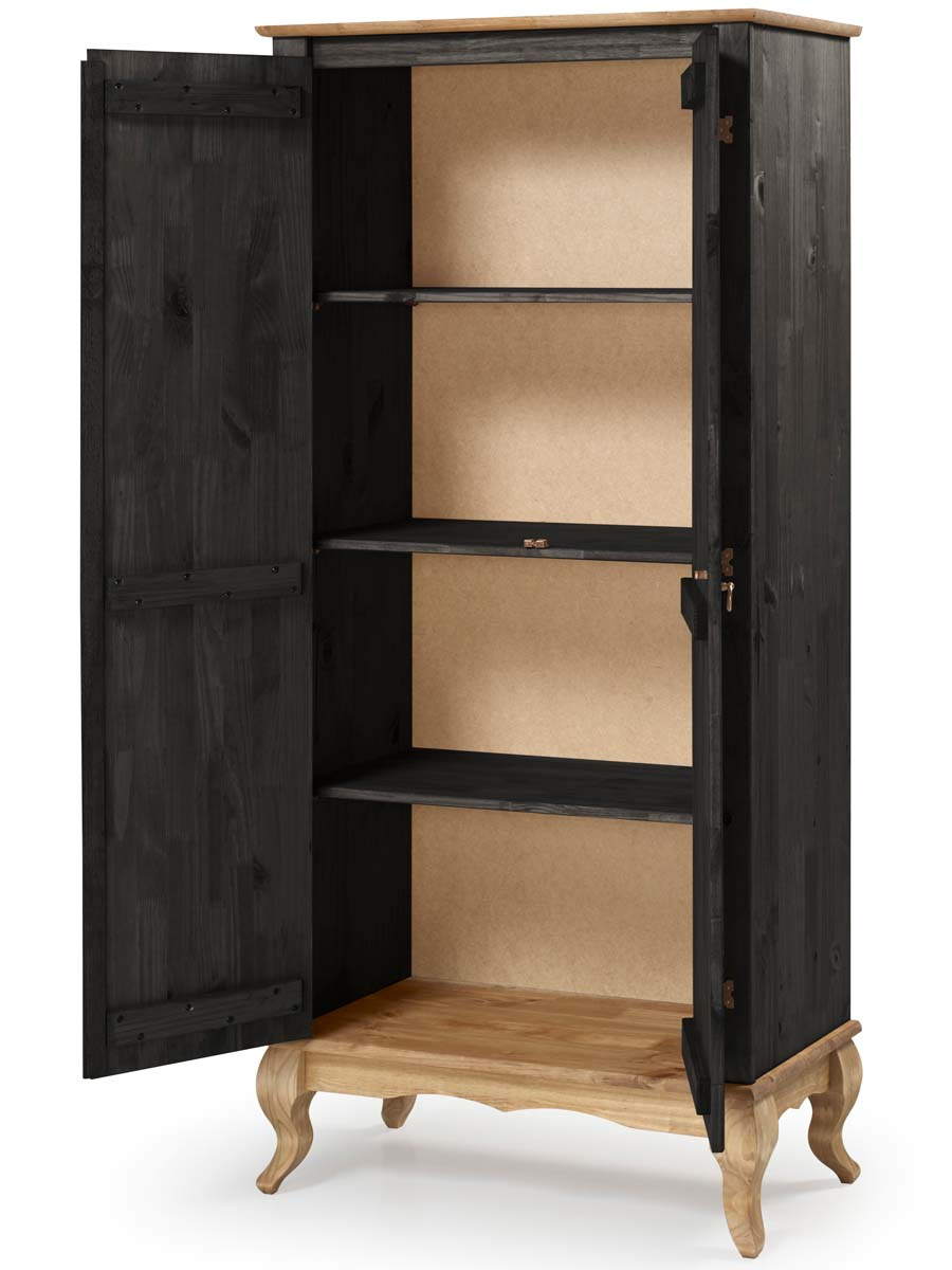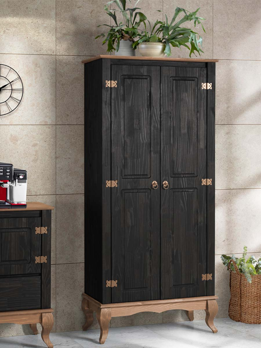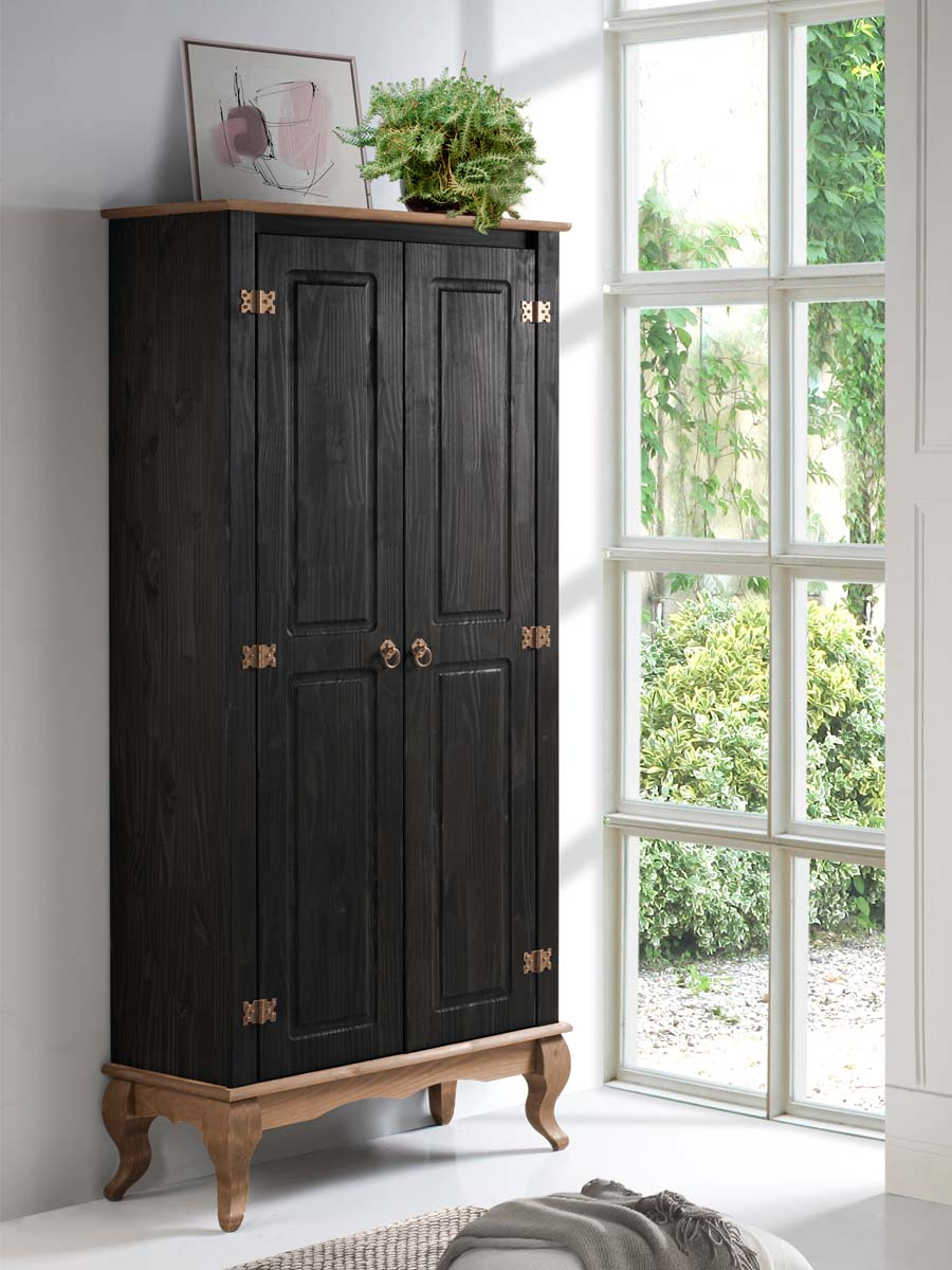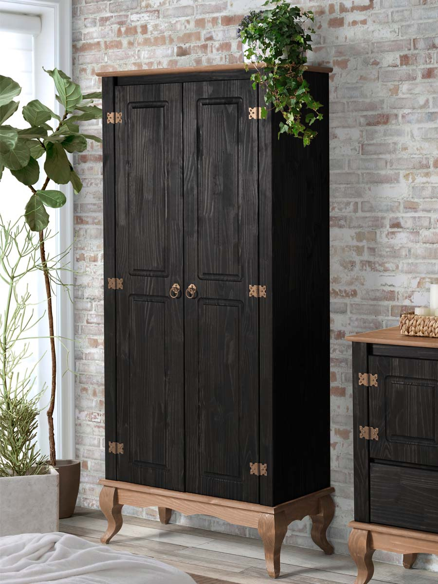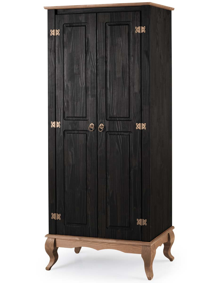 Roupeiro de madeira 02 portas pés Luis XV 176 x 80 x 36 cm (A x L x P). Guarda roupa solteiro 02 portas com pés Luis, esta linha é perfeita para dar um upgrade na decoração de seu quarto, suas peças além de serem super versáteis e funcionais, contam com dobradiça mexicana e puxador em argola, com design elegante agregando mais sofisticação ao ambiente. São móveis de extrema resistência e durabilidade produzidos em materiais de excelente qualidade. O roupeiro é enviado desmontado.