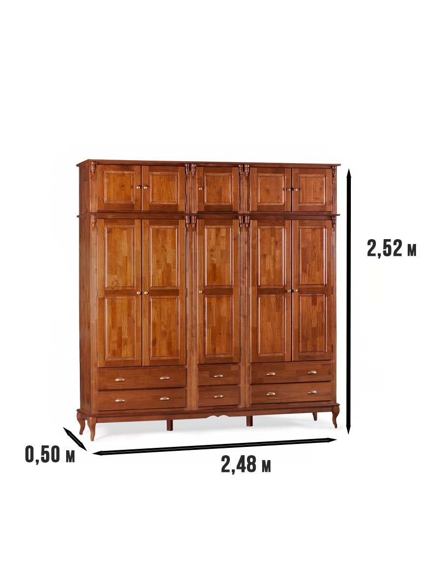 Roupeiro Linz 04 portas 04 gavetas 252 x 248 x 50 cm (A x L x P). Roupeiro Linz com pés Luis XV, esta linha é perfeita para dar um upgrade na decoração de seu quarto, suas peças além de serem super versáteis e funcionais, contam com duas gavetas que facilitam muito o dia a dia e a organização de itens como roupas, livros, roupas de cama e outros, possuem também um design elegante agregando mais sofisticação ao ambiente. São móveis de extrema resistência e durabilidade produzidos em materiais de excelente qualidade. Possui 2,52 m de altura por 2,48 m de largura e 0,50 m de profundidade. O roupeiro Linz é enviado semi montado.