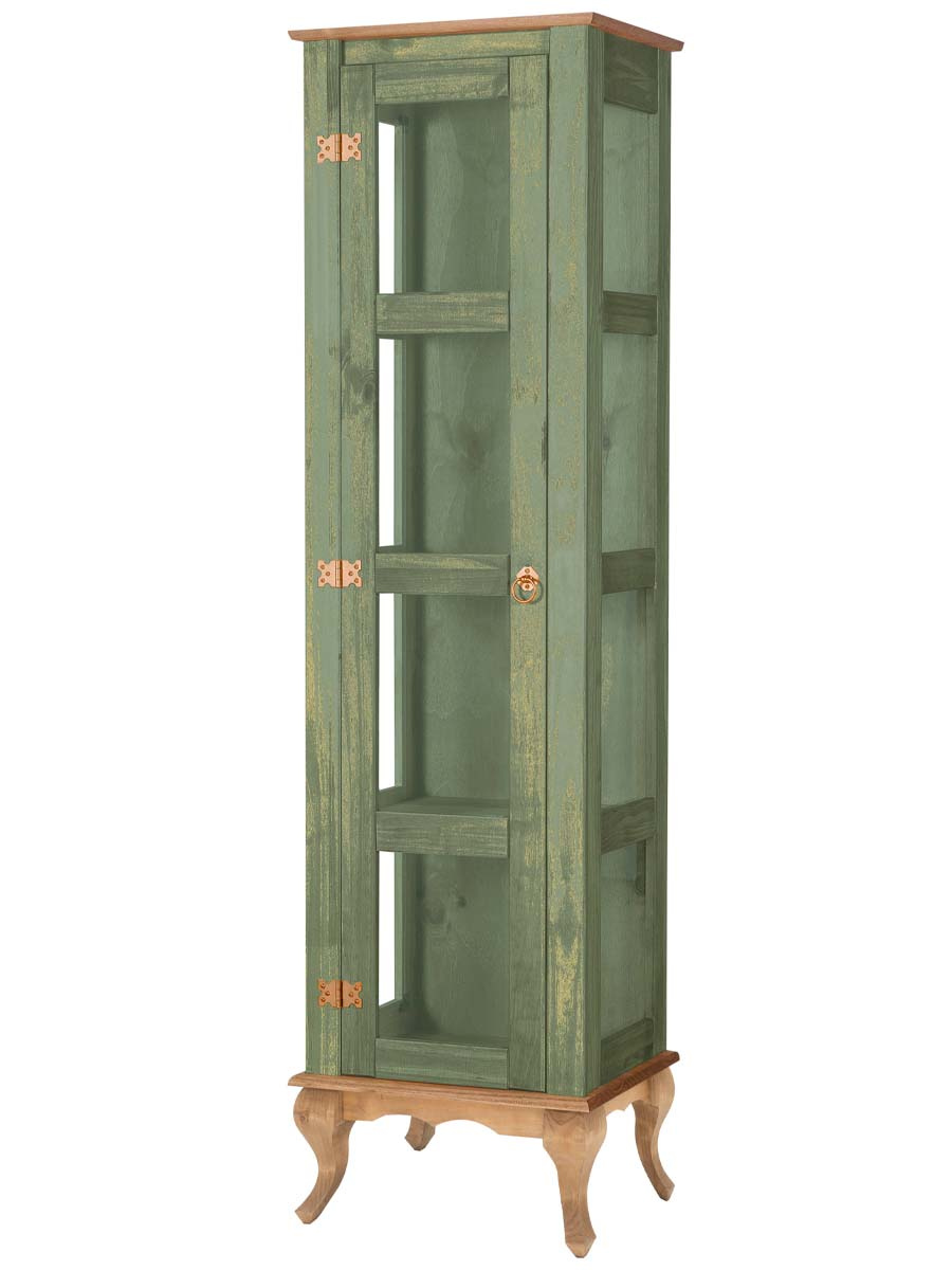 Cristaleira de madeira 01 porta pés Luis XV 175 x 47 x 37 cm (A x L x P). Cristaleira de madeira 01 porta com pés Luis e lateral em vidro. Esta linha é perfeita para dar um upgrade na decoração de seu quarto, suas peças além de serem super versáteis e funcionais, contam com dobradiça mexicana e puxador em argola, com design elegante agregando mais sofisticação ao ambiente. São móveis de extrema resistência e durabilidade produzidos em materiais de excelente qualidade. A cristaleira é enviada desmontada.
