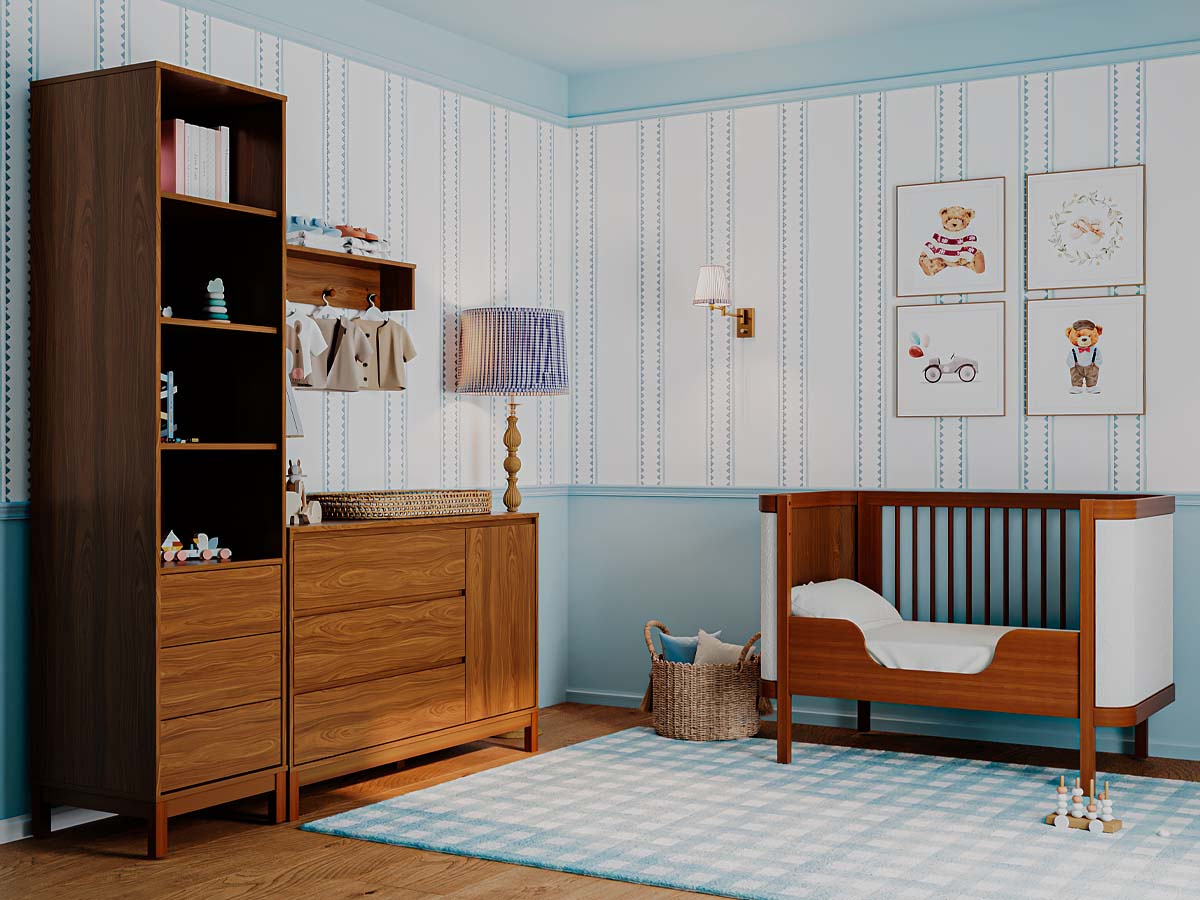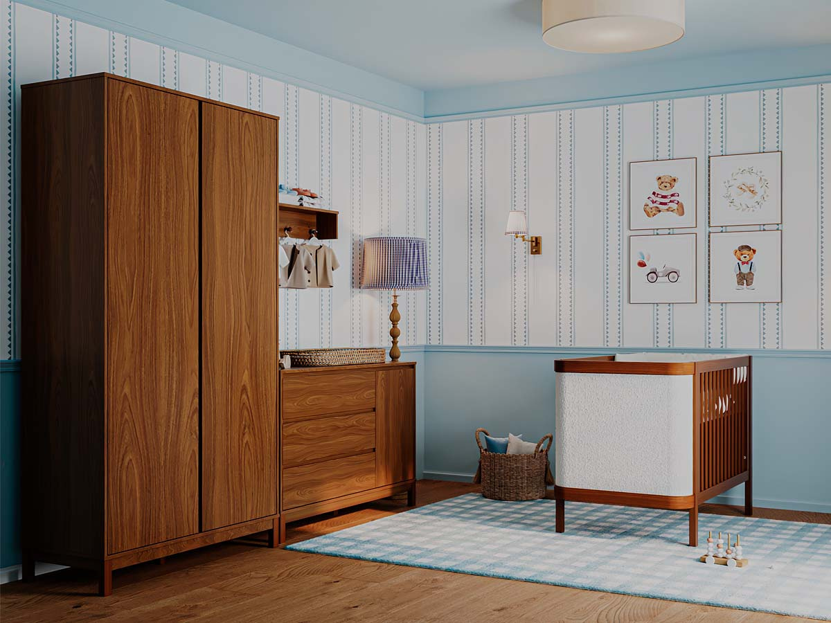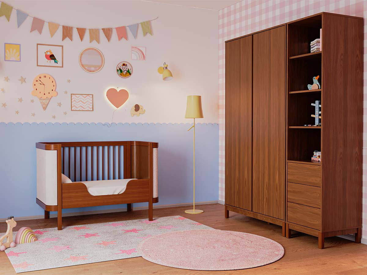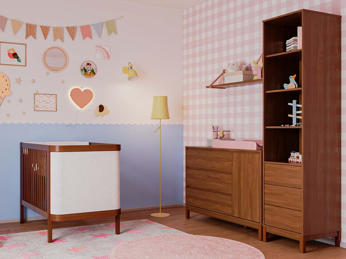 Berço de madeira 2 em 1 tecido Boucle 96 x 136 x 77 cm (A x L x P). Berço seguro e certificado pelo INMETRO 018923/2024. Uma linha para o quarto do bebê, diferente de tudo o que você já viu. Combinando elegância, funcionalidade e exclusividade, criada para transformar o ambiente do bebê sofisticado e acolhedor. Com a funcionalidade 2 em 1, ele se transforma em uma mini cama que conta com grade de proteção e cantos arredondados que garante a segurança que seu filho merece. Estrado com 3 regulagens de altura. O berço Soley é enviado desmontado.