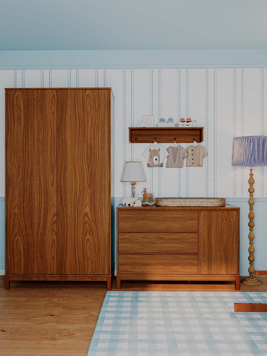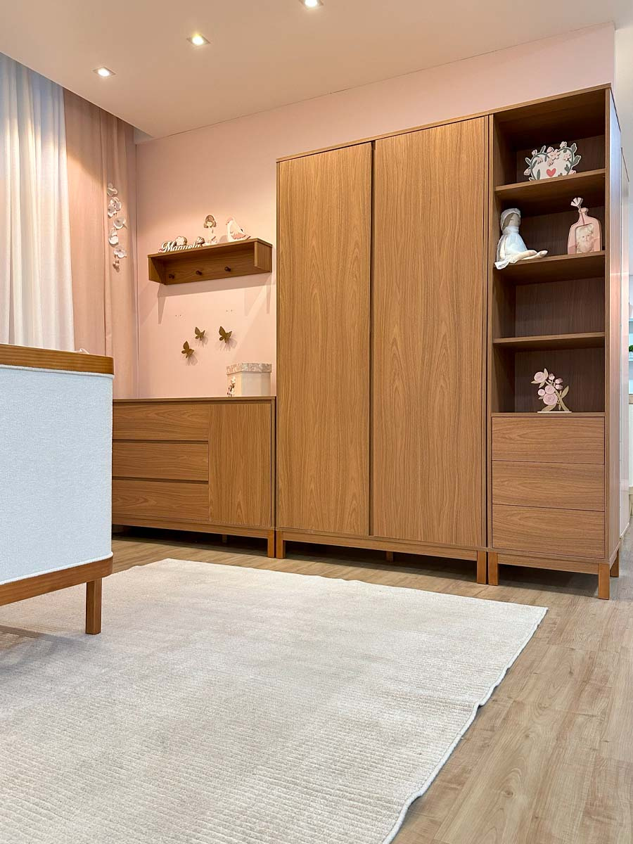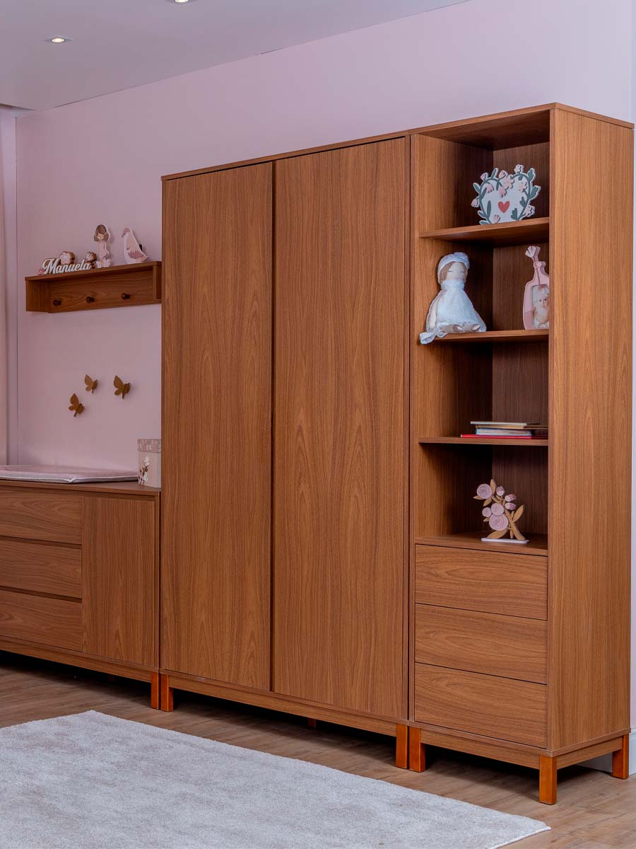 Roupeiro 2 portas 4 gavetas 6 prateleiras linha soley 220 x 117 x 52 cm (A x L x P). Uma linha para o quarto do bebê, diferente de tudo o que você já viu. Combinando elegância, funcionalidade e exclusividade, criada para transformar o ambiente do bebê sofisticado e acolhedor. Com prateleiras amplas, cabideiro interno e um design minimalista ele permite organizar o enxoval de maneira prática e inteligente. O roupeiro Soley é enviado desmontado.
