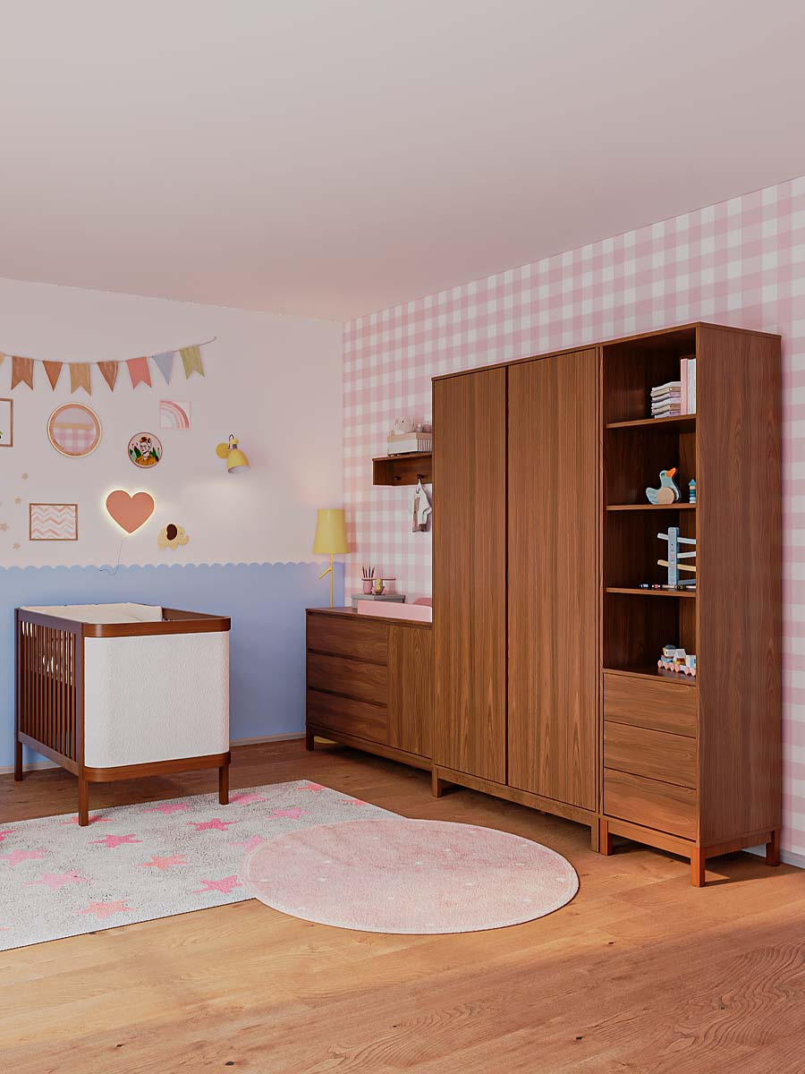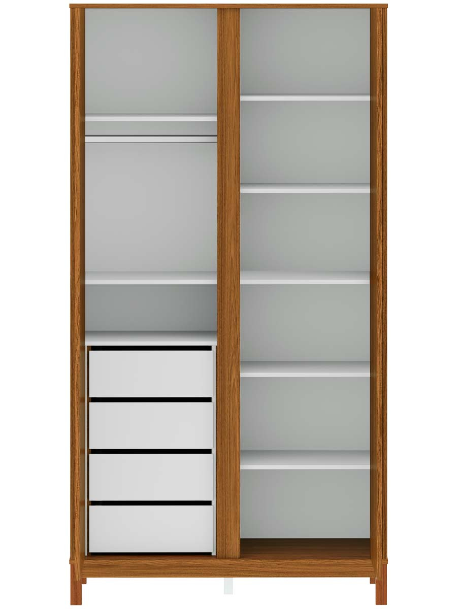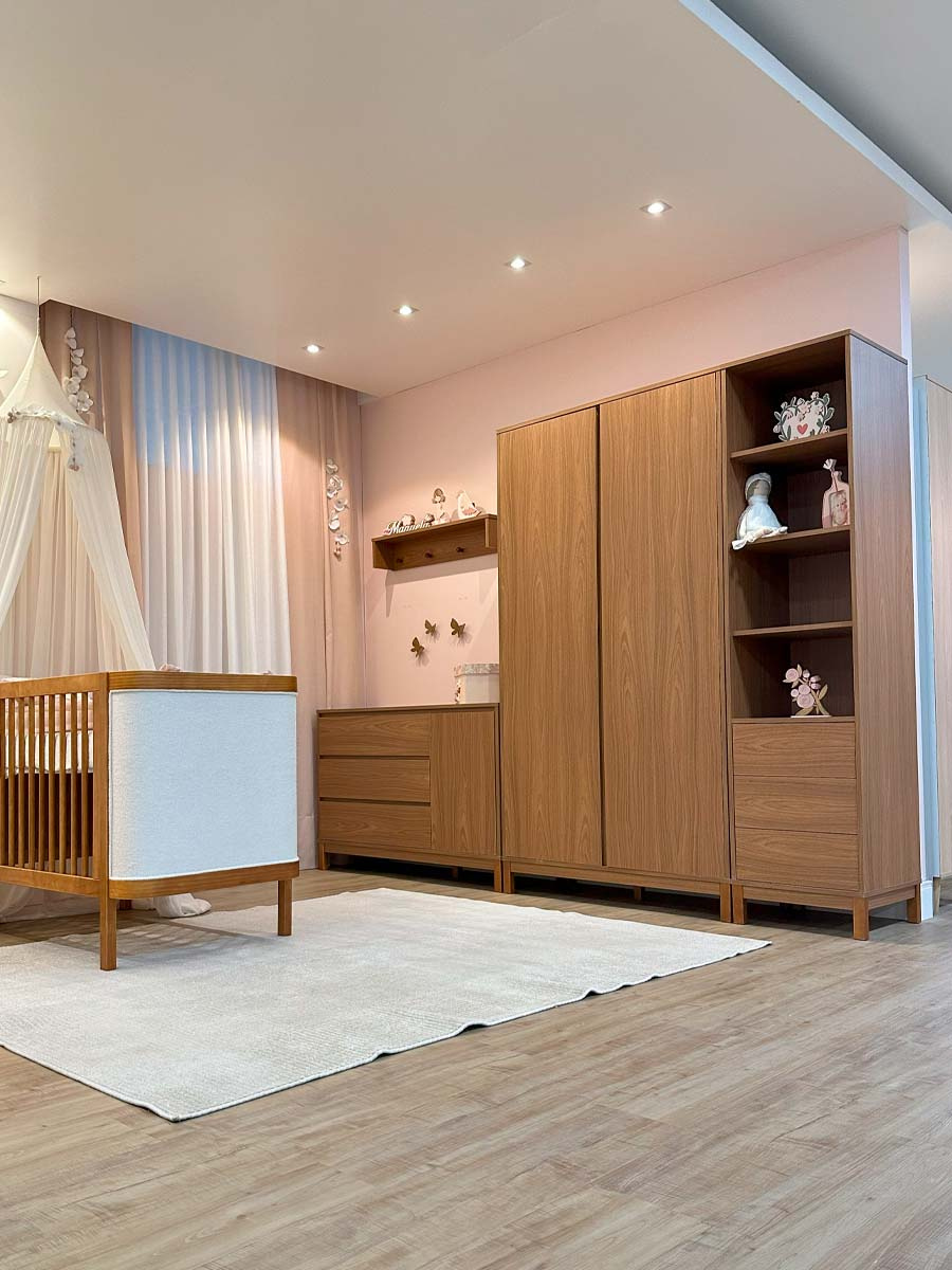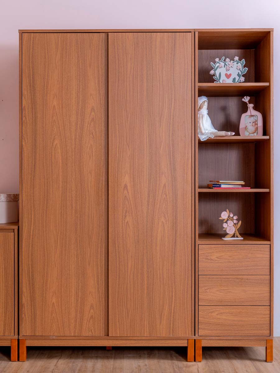 Roupeiro 2 portas 4 gavetas 6 prateleiras linha soley 220 x 117 x 52 cm (A x L x P). Uma linha para o quarto do bebê, diferente de tudo o que você já viu. Combinando elegância, funcionalidade e exclusividade, criada para transformar o ambiente do bebê sofisticado e acolhedor. Com prateleiras amplas, cabideiro interno e um design minimalista ele permite organizar o enxoval de maneira prática e inteligente. O roupeiro Soley é enviado desmontado.