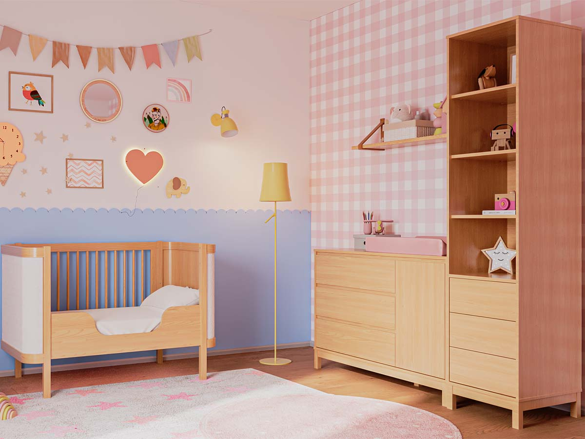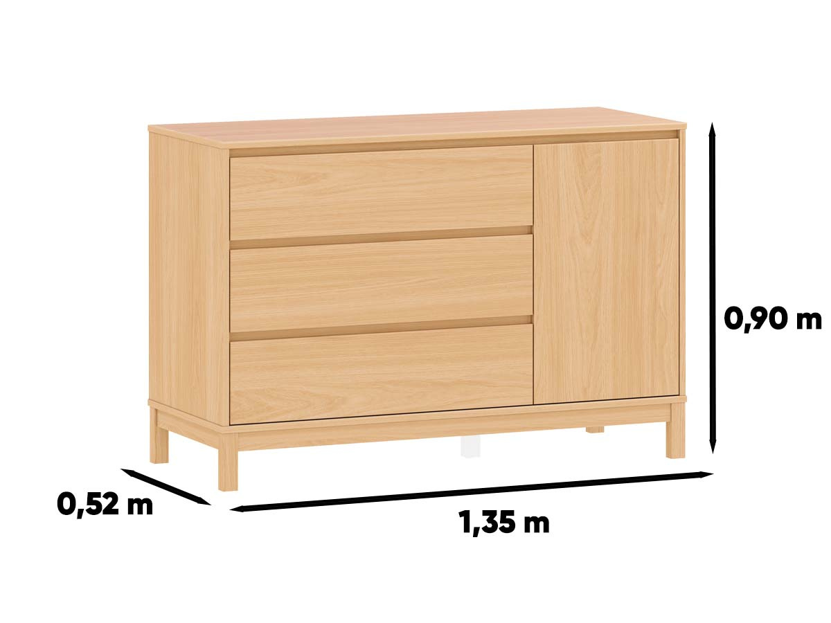 Cômoda 3 Gavetas 1 Porta Linha Soley 90 x 135 x 52 cm (A x L x P). Uma linha para o quarto do bebê, diferente de tudo o que você já viu. Combinando elegância, funcionalidade e exclusividade, criada para transformar o ambiente do bebê sofisticado e acolhedor. Solução perfeita para manter o quarto do bebê sempre organizado, com um design que combina beleza e funcionalidade. A cômoda Soley é enviada desmontado.