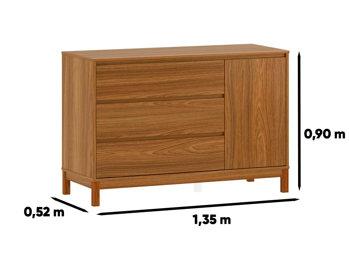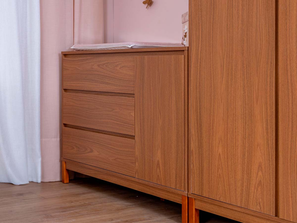 Cômoda 3 Gavetas 1 Porta Linha Soley 90 x 135 x 52 cm (A x L x P). Uma linha para o quarto do bebê, diferente de tudo o que você já viu. Combinando elegância, funcionalidade e exclusividade, criada para transformar o ambiente do bebê sofisticado e acolhedor. Solução perfeita para manter o quarto do bebê sempre organizado, com um design que combina beleza e funcionalidade. A cômoda Soley é enviada desmontado.