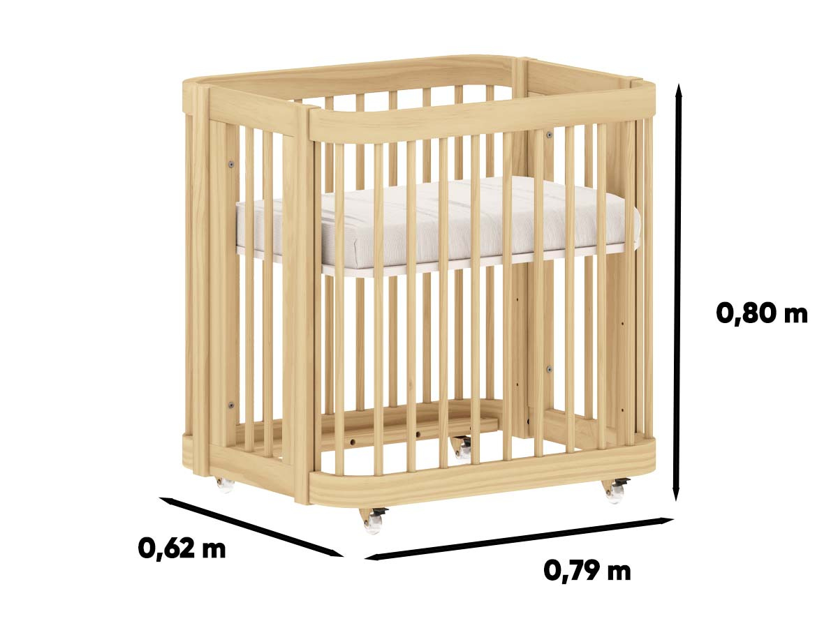 Berço de madeira 3 em 1 linha evolutiva 80 x 136 x 79 cm (A x L x P). Berço seguro e certificado pelo INMETRO 011411/2023. A linha Evolutiva conta com um berço 3 em 1, pode ser transformado em mini-berço, berço e mini-cama, dois modelos de cômodas e prateleiras. Seus cantos arredondados deixam a linha mais especial e prática para o dia a dia! Estrado com 3 regulagens de altura e rodízios em gel. O berço Evolutiva é enviado desmontado.