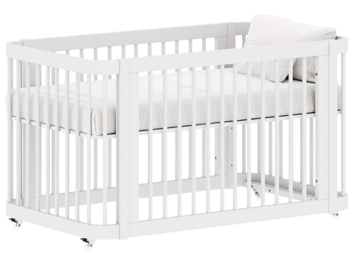 Berço 2 em 1 linha evolutiva 80 x 136 x 79 cm (A x L x P). Berço seguro e certificado pelo INMETRO 011411/2023. A linha Evolutiva conta com um berço 2 em 1, pode ser transformado em mini-cama, dois modelos de cômodas e prateleiras. Seus cantos arredondados deixam a linha mais especial e prática para o dia a dia! Estrado com 3 regulagens de altura e rodízios em gel. O berço Evolutiva é enviado desmontado.