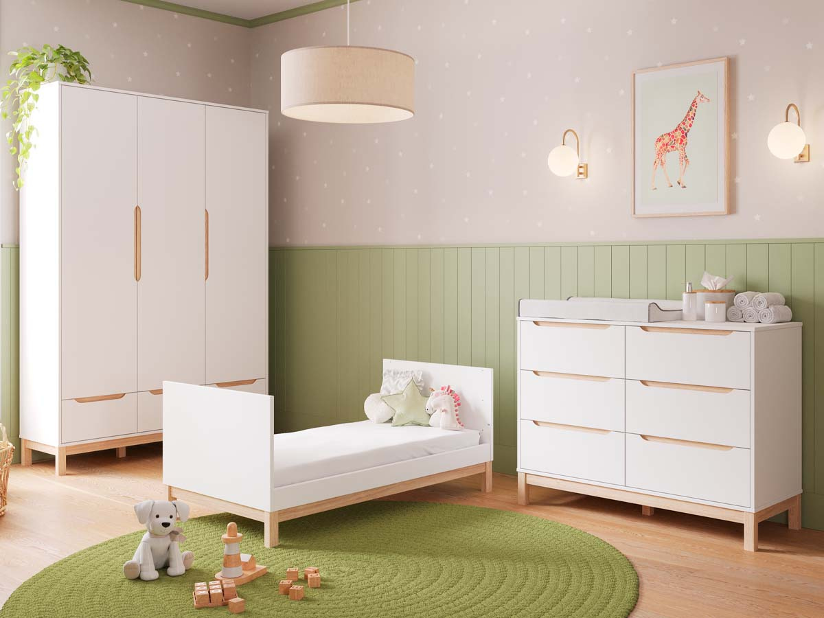 Berço estilo americano 2 em 1 linha Cozy 90 x 134 x 76 cm (A x L x P). Berço seguro e certificado pelo INMETRO 001890/2024. Com um berço, cômoda e armário cuidadosamente projetados, a linha Cozy combina funcionalidade com um estilo americano de linhas retas. É para papais que buscam praticidade de forma leve e elegante! Com a funcionalidade 2 em 1, ele se transforma em uma mini cama. Estrado com 3 regulagens de altura. O berço Cozy é enviado desmontado.