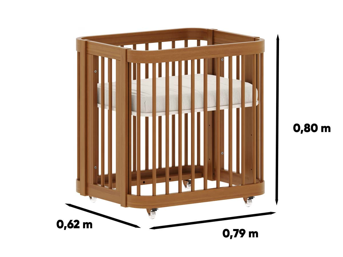 Berço de madeira 3 em 1 linha evolutiva 80 x 136 x 79 cm (A x L x P). Berço seguro e certificado pelo INMETRO 011411/2023. A linha Evolutiva conta com um berço 3 em 1, pode ser transformado em mini-berço, berço e mini-cama, dois modelos de cômodas e prateleiras. Seus cantos arredondados deixam a linha mais especial e prática para o dia a dia! Estrado com 3 regulagens de altura e rodízios em gel. O berço Evolutiva é enviado desmontado.