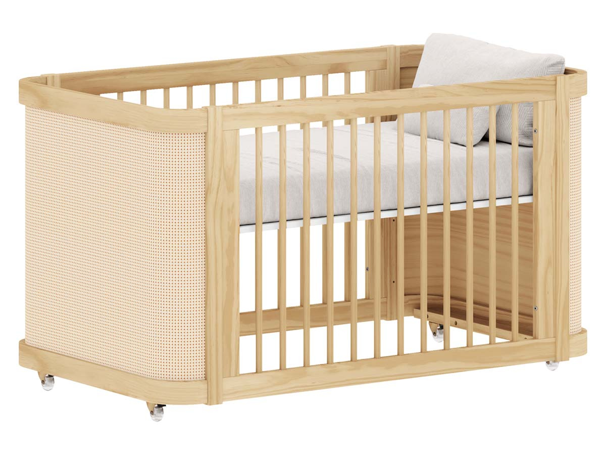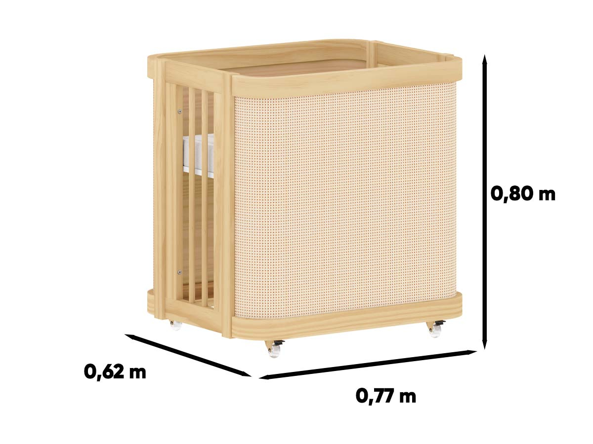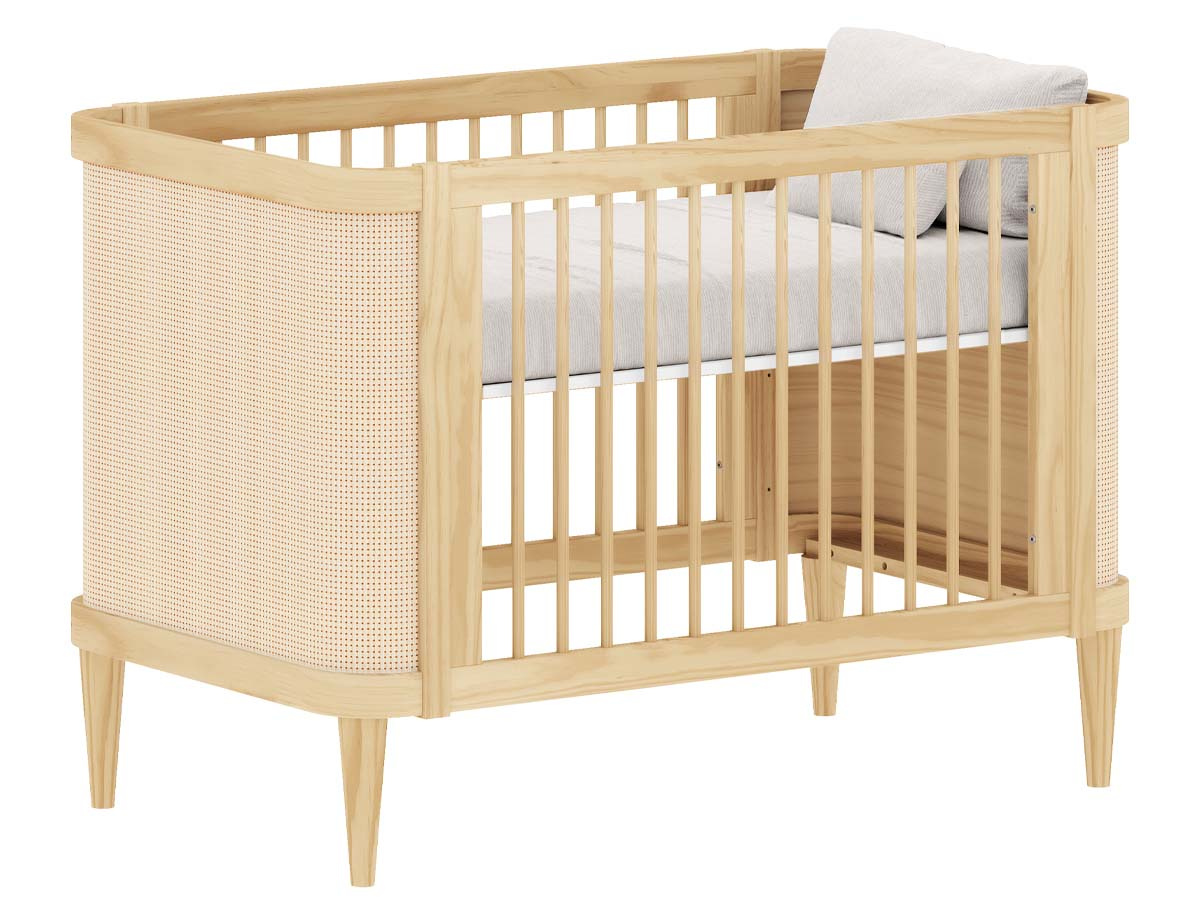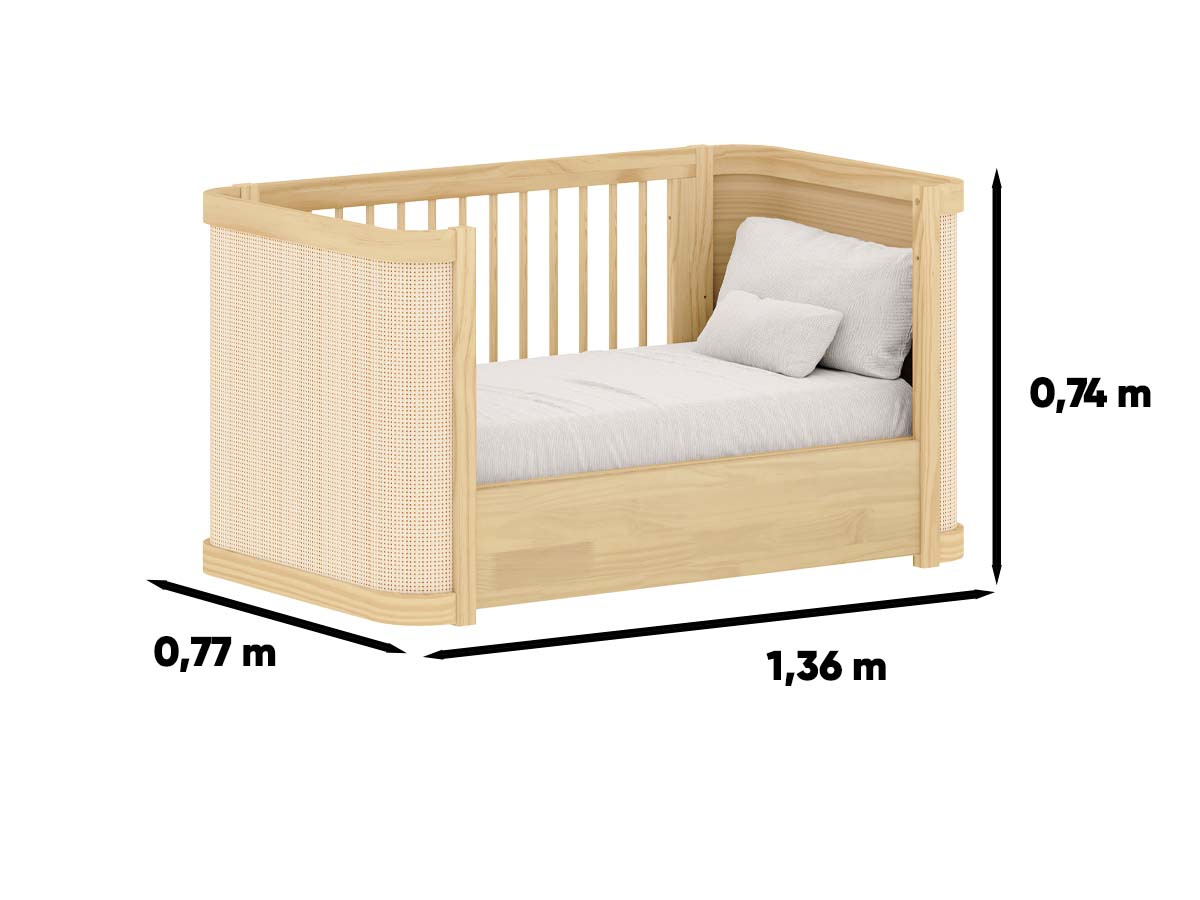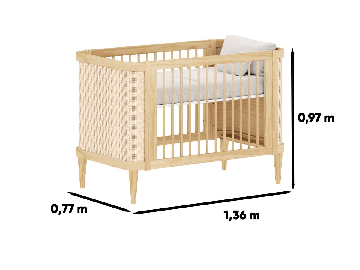 Berço de Madeira Paglia 3 em 1 Vira Mini Cama e Mini Berço 84 x 133 x 76 cm (A x L x P) . Berço seguro e certificado pelo INMETRO 002793/2024. Descubra a elegância e funcionalidade da linha Paglia, uma linha para o quarto do bebê, diferente de tudo o que você já viu. Com berço produzido em madeira com ratam na cor palha natural aplicado nas cabeceiras, a linha paglia possui também cômodas e cama cuidadosamente projetados, transformam o quarto em um espaço acolhedor e sofisticado. Estrado com 3 regulagens de altura. O berço Paglia é enviado desmontado.