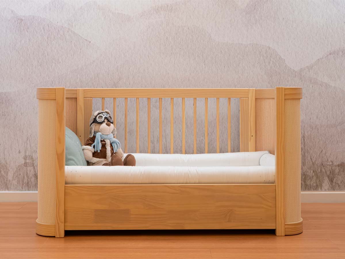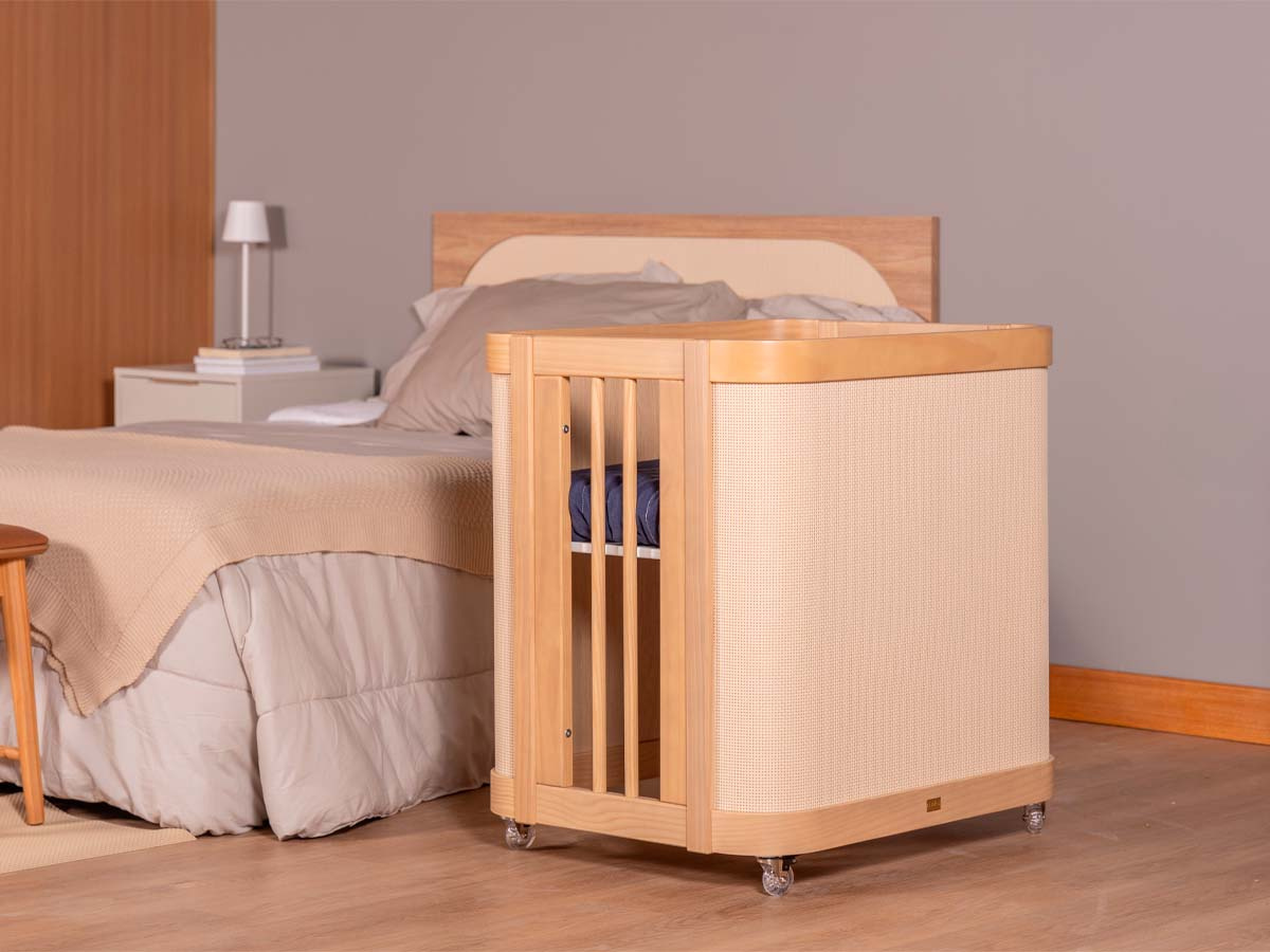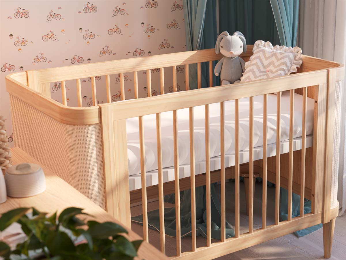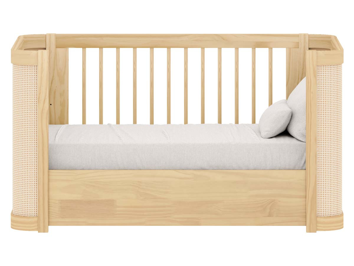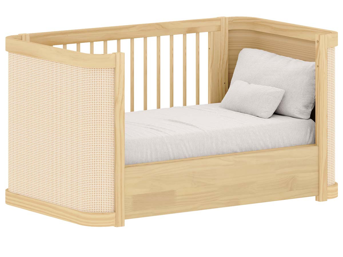 Berço de Madeira Paglia 3 em 1 Vira Mini Cama e Mini Berço 84 x 133 x 76 cm (A x L x P) . Berço seguro e certificado pelo INMETRO 002793/2024. Descubra a elegância e funcionalidade da linha Paglia, uma linha para o quarto do bebê, diferente de tudo o que você já viu. Com berço produzido em madeira com ratam na cor palha natural aplicado nas cabeceiras, a linha paglia possui também cômodas e cama cuidadosamente projetados, transformam o quarto em um espaço acolhedor e sofisticado. Estrado com 3 regulagens de altura. O berço Paglia é enviado desmontado.