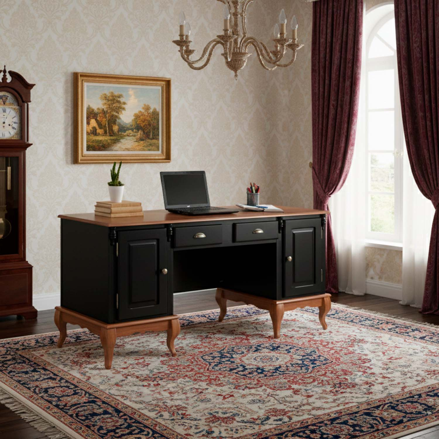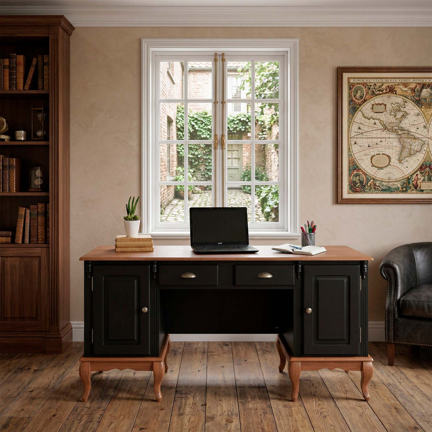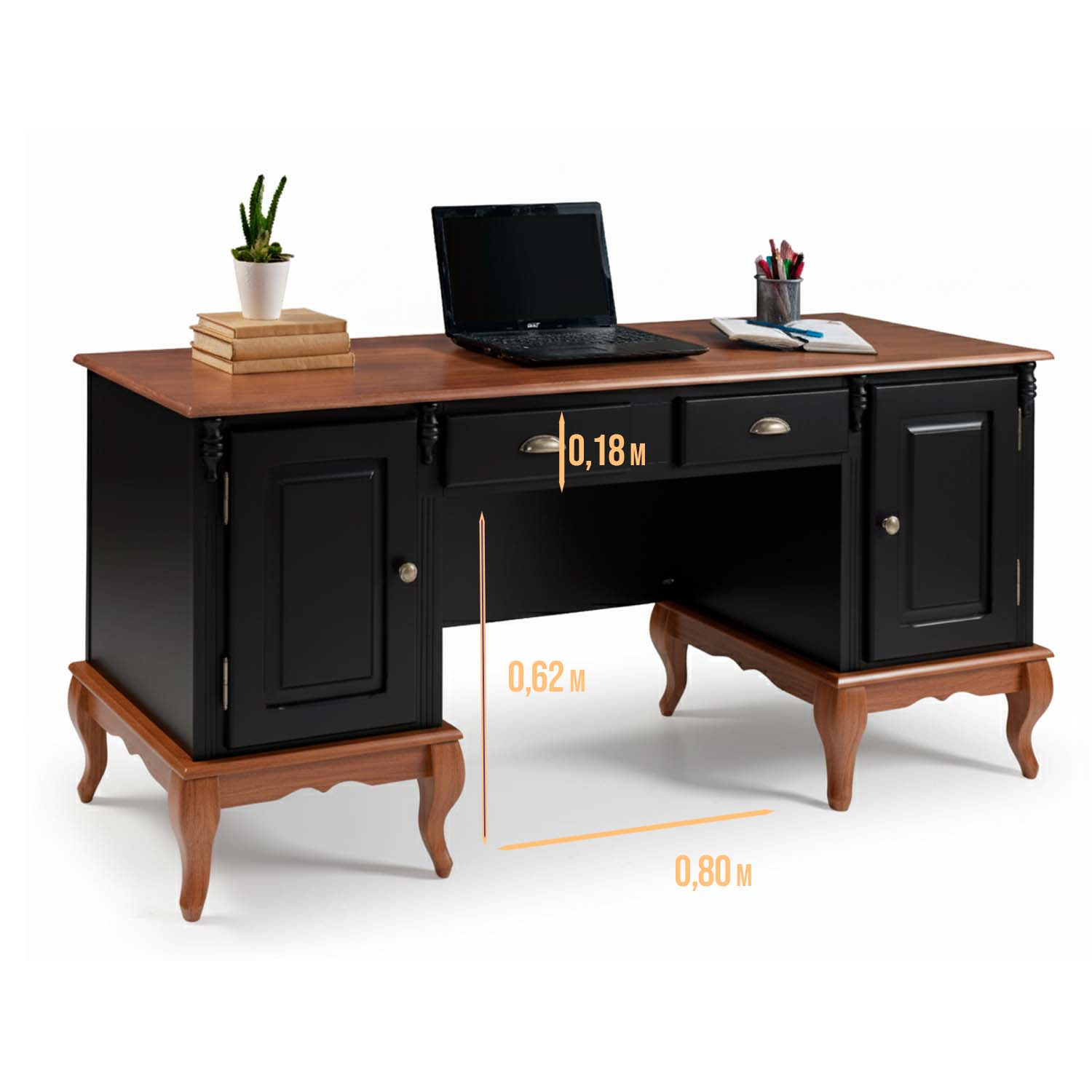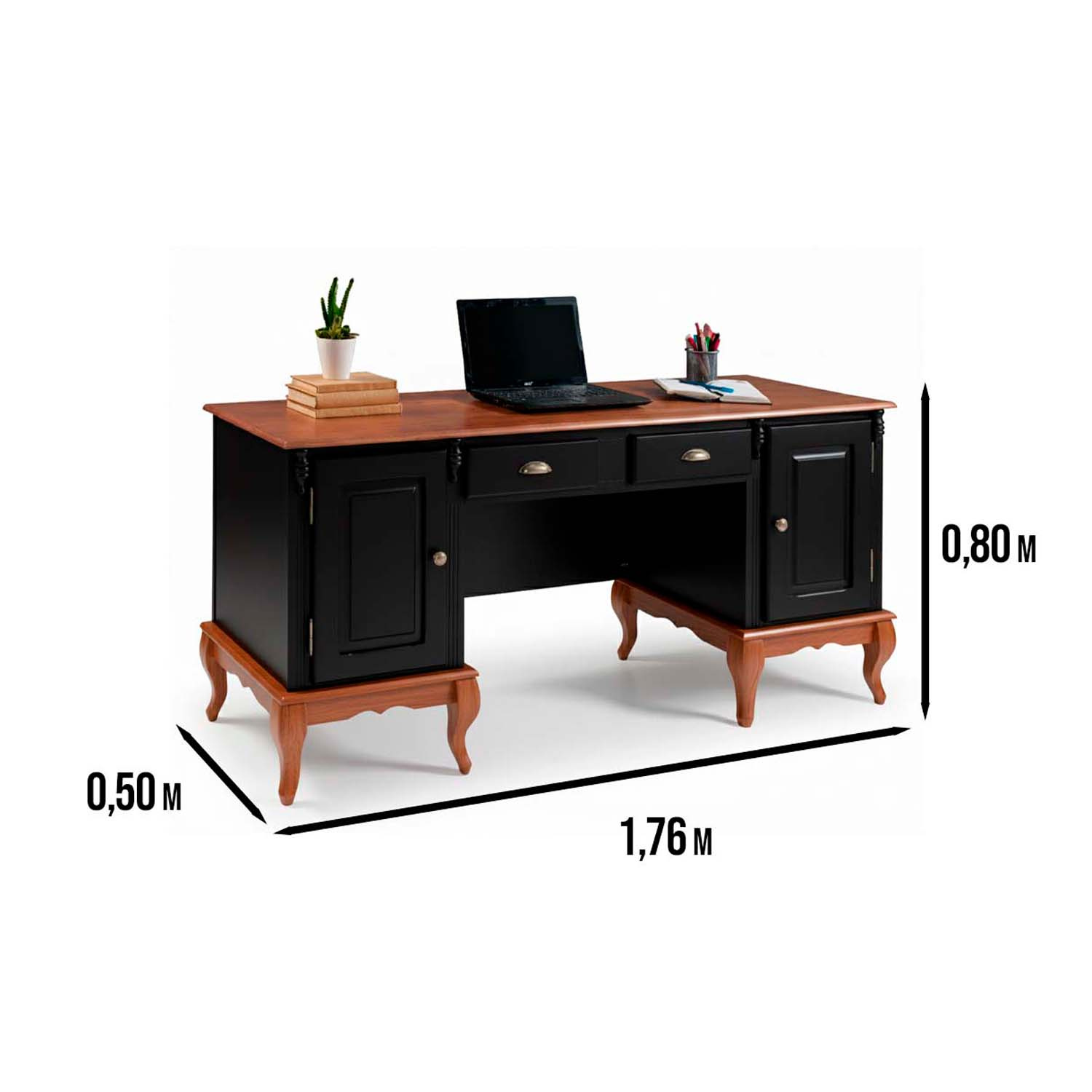 Escrivaninha 2 Portas 2 Gavetas Pés Luis XV Linz Móveis 80 x 176 x 50 cm (A x L x P). As escrivaninhas Linz são peças super resistentes, versáteis e funcionais, possuem 2 gavetas e 2 portas para facilitar a organização de itens. Com design retrô e pés Luis XV são ideias para criar uma decoração diferenciada em escritórios, home offices, salas de atendimento, quartos e outros. Móvel com ótimo acabamento e detalhes divisores de ambiente. Estrutura com pintura laqueada e tampo e base na cor Imbuia Glazer. Possui 0,80 m de altura por 1,76 m de largura e 0,50 m de profundidade. A escrivaninha de madeira é enviada montada.