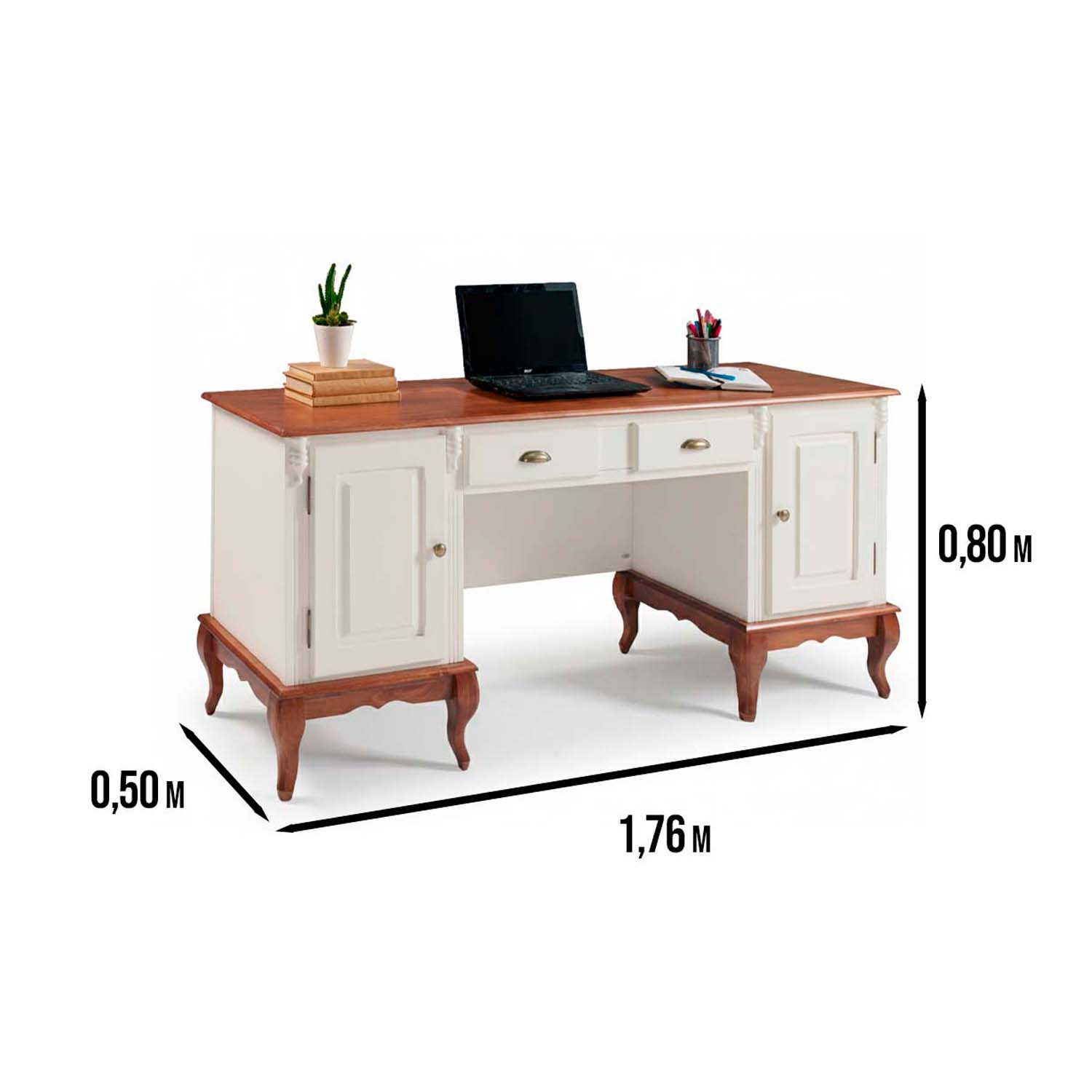 Escrivaninha 2 Portas 2 Gavetas Pés Luis XV Linz Móveis 80 x 176 x 50 cm (A x L x P). As escrivaninhas Linz são peças super resistentes, versáteis e funcionais, possuem 2 gavetas e 2 portas para facilitar a organização de itens. Com design retrô e pés Luis XV são ideias para criar uma decoração diferenciada em escritórios, home offices, salas de atendimento, quartos e outros. Móvel com ótimo acabamento e detalhes divisores de ambiente. Estrutura com pintura laqueada e tampo e base na cor Imbuia Glazer. Possui 0,80 m de altura por 1,76 m de largura e 0,50 m de profundidade. A escrivaninha de madeira é enviada montada.