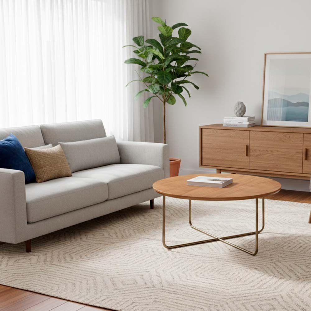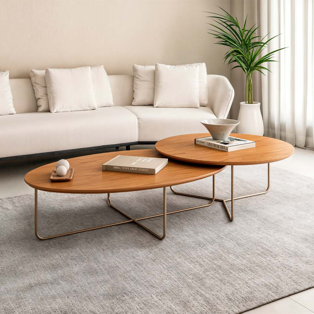 Mesa De Centro Orbis Base em Aço Carbono 41 x 100 x 100 cm (A x L x P). A Mesa de Centro Orbis é uma peça que equilibra a rusticidade do acabamento amadeirado com a leveza do design contemporâneo. Ela se destaca por sua estética minimalista, sendo ideal para salas de estar que buscam um toque de sofisticação sem sobrecarregar o ambiente. Apresenta um acabamento em madeira com veios naturais visíveis, conferindo um aspecto orgânico e acolhedor à peça. Estrutura em metal com design "cross" (em X) na base, que proporciona estabilidade e um visual moderno e arejado. Por ter uma base vazada, esta mesa é excelente para ampliar visualmente espaços pequenos, pois permite que o tapete e o piso fiquem à vista. Combina perfeitamente com sofás de tons neutros (cinza, bege ou off-white) e pode ser decorada com livros de arte ou pequenos vasos de cerâmica.
