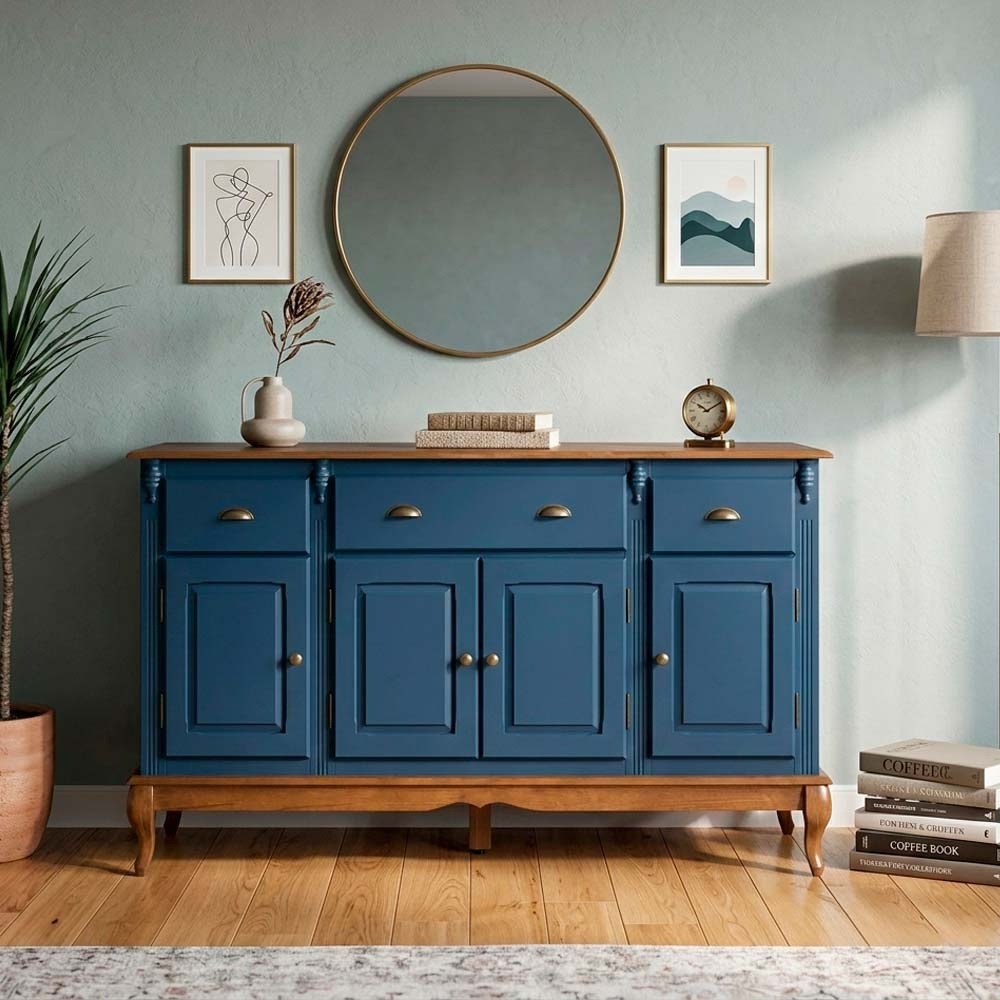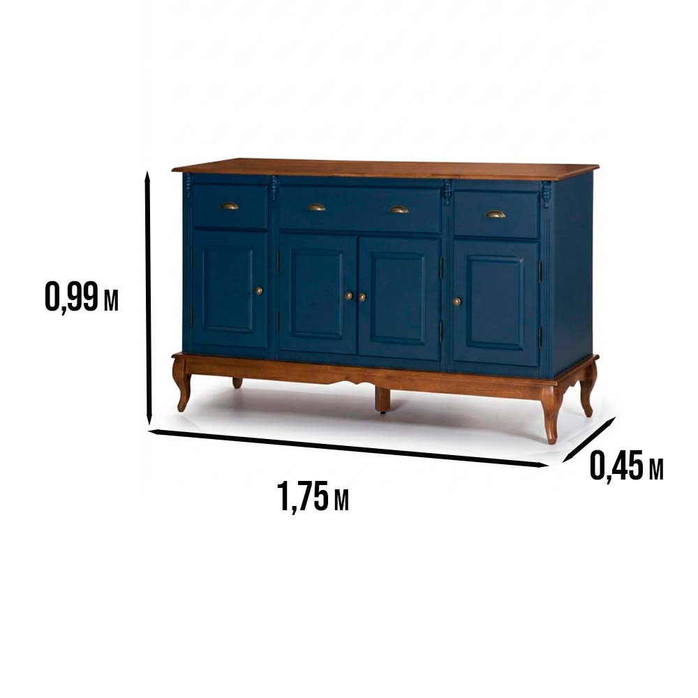 Balcão Hanover 4 portas 3 gavetas pés Luis XV 99 x 175 x 45 cm (A x L x P). O balcão Hanover é a peça central perfeita para quem busca combinar a elegância clássica com a durabilidade da madeira maciça. Com um design atemporal, ele transforma qualquer sala de jantar, sala de estar ou hall de entrada em um ambiente sofisticado.Equipado com três gavetas e quatro portas inferiores, oferece espaço generoso para organizar louças, talheres, toalhas de mesa e outros itens essenciais. Puxadores em metal bronzeado e pés em estilo Luiz XV adicionam um charme antigo e refinado à peça. Possui 0,99 m de altura por 1,75 m de largura e 0,45 m de profundidade. O balcão de madeira é enviado montado.