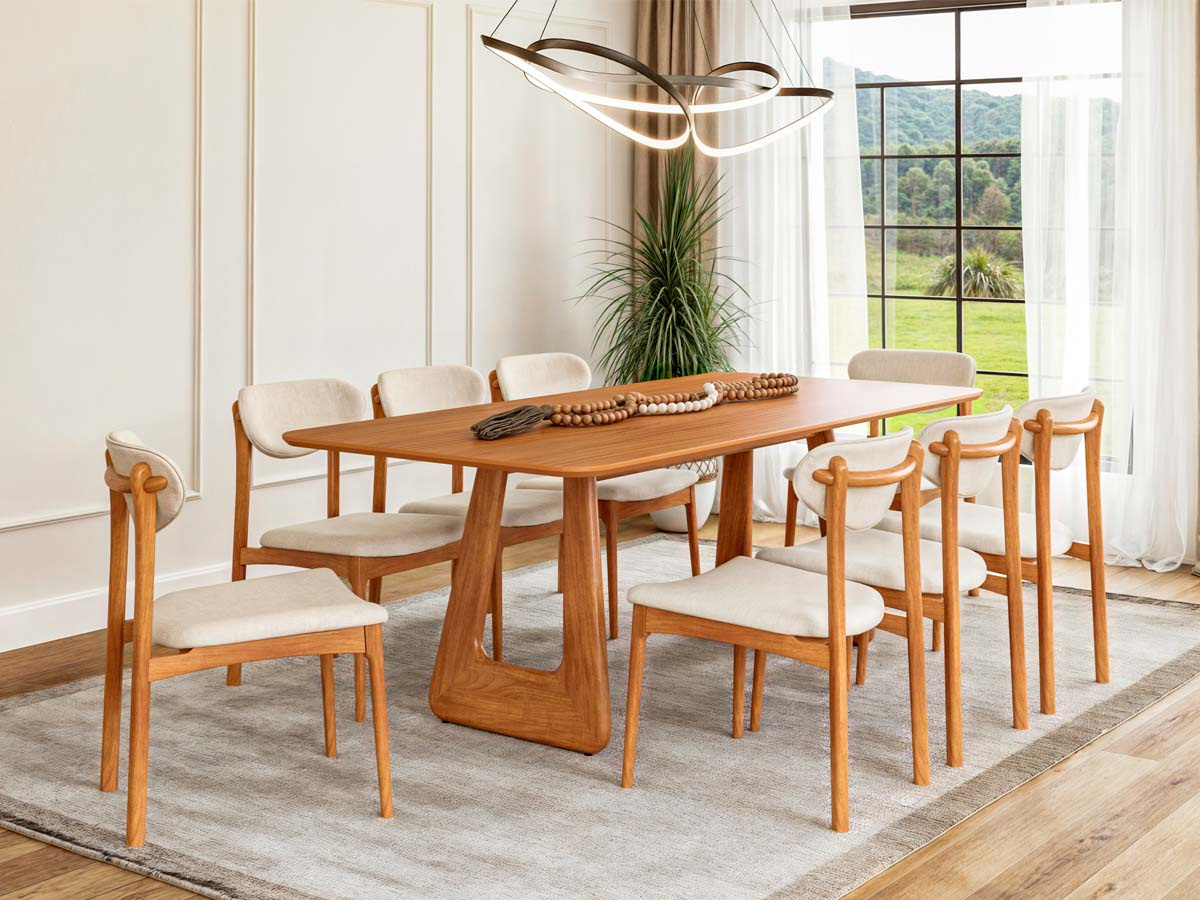 Mesa de jantar Panamera base madeira 240 x 110 x 78 cm (C x L x A). A mesa Panamera possui estrutura fabricada em madeira de eucalipto e tampo em MDF com lâmina de cinamomo. Com design super moderno e autêntico, acomoda perfeitamente as cadeiras, ocupando menos espaço e proporcionando grande leveza ao seu ambiente. Produto enviado semi montado.