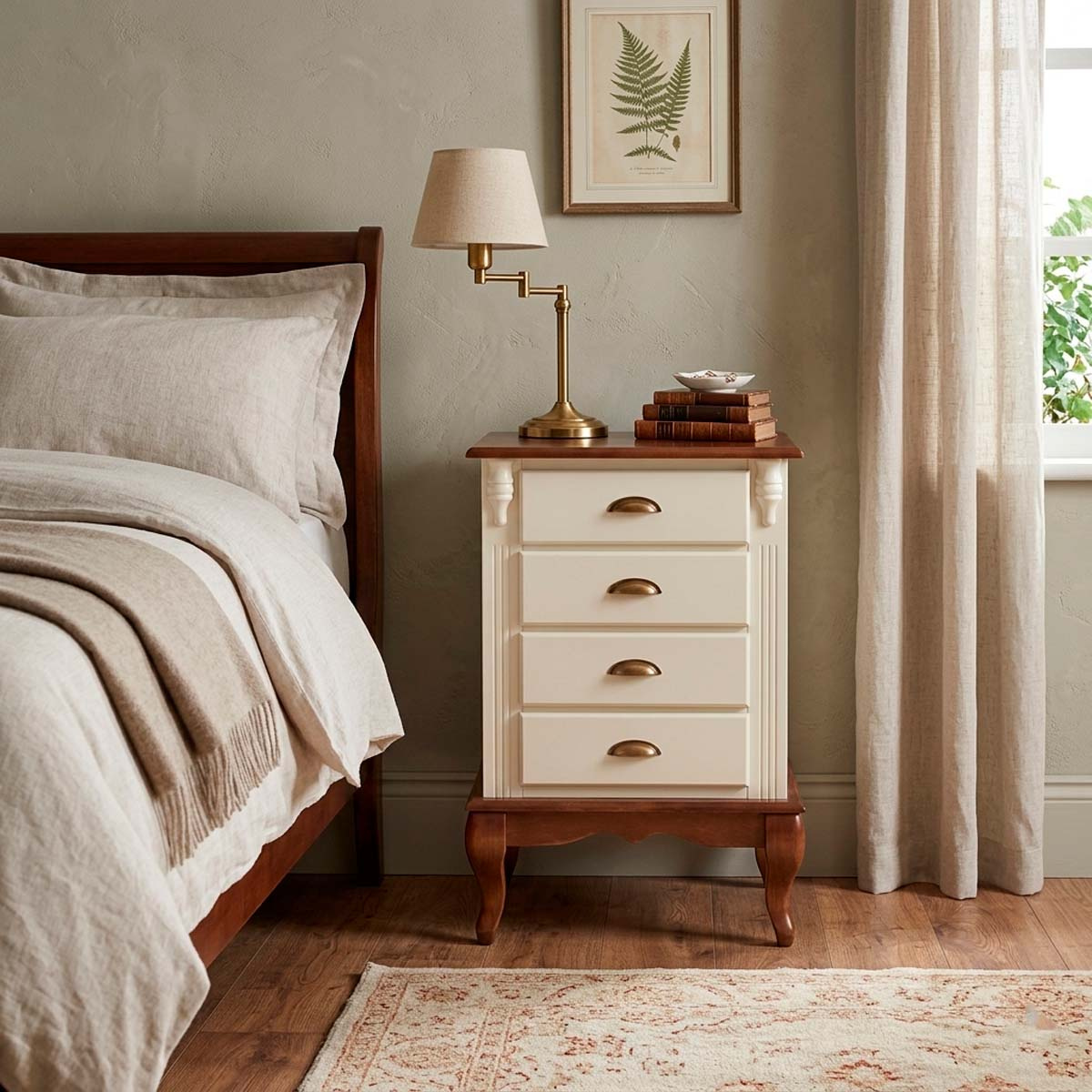 Mesa de cabeceira Hanover pés Luis XV 80 x 53 x 40 cm (A x L x P). Criado mudo Linz com pés Luis XV, esta linha é perfeita para dar um upgrade na decoração de seu quarto, suas peças além de serem super versáteis e funcionais, contam com gavetas que facilitam muito o dia a dia e a organização de itens como roupas, livros, roupas de cama e outros, possuem também um design elegante agregando mais sofisticação ao ambiente. São móveis de extrema resistência e durabilidade produzidos em materiais de excelente qualidade. Possui 0,80 m de altura por 0,53 m de largura e 0,40 m de profundidade. A mesa de cabeceira Linz é enviada montada.