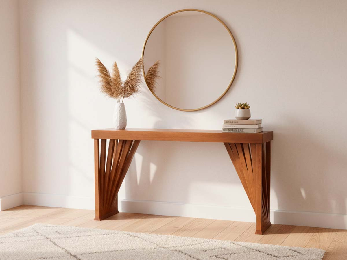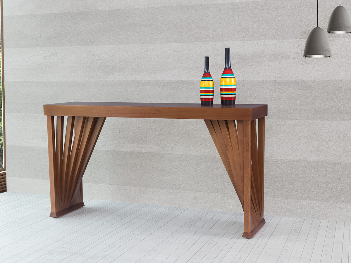 Aparador vitória 132 x 80 X 41 cm com base em madeira ripada. Eleve a sofisticação do seu ambiente com o Aparador Vitória. Com 1,32 m de largura, esta peça é a escolha ideal para quem busca um móvel funcional que também funcione como uma obra de arte central em halls de entrada, salas de jantar ou corredores. O grande diferencial reside em sua base geométrica inspirada na arte da dobradura. As ripas de madeira convergem em um movimento dinâmico, criando um jogo de luz e sombra único. Seu estilo contemporâneo harmoniza facilmente com espelhos redondos, vasos orgânicos ou livros de arte, adaptando-se do estilo rústico chique ao moderno minimalista. Produto enviado montado.