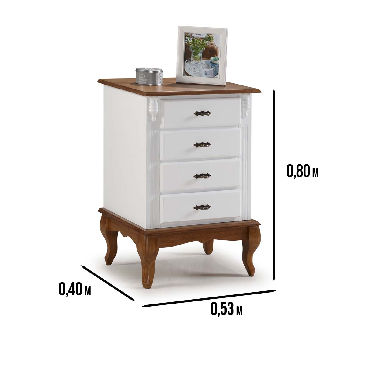 Mesa de cabeceira Linz pés Luis XV 80 x 53 x 40 cm (A x L x P). Criado mudo Linz com pés Luis XV, esta linha é perfeita para dar um upgrade na decoração de seu quarto, suas peças além de serem super versáteis e funcionais, contam com gavetas que facilitam muito o dia a dia e a organização de itens como roupas, livros, roupas de cama e outros, possuem também um design elegante agregando mais sofisticação ao ambiente. São móveis de extrema resistência e durabilidade produzidos em materiais de excelente qualidade. Possui 0,80 m de altura por 0,53 m de largura e 0,40 m de profundidade. A mesa de cabeceira Linz é enviada montada.