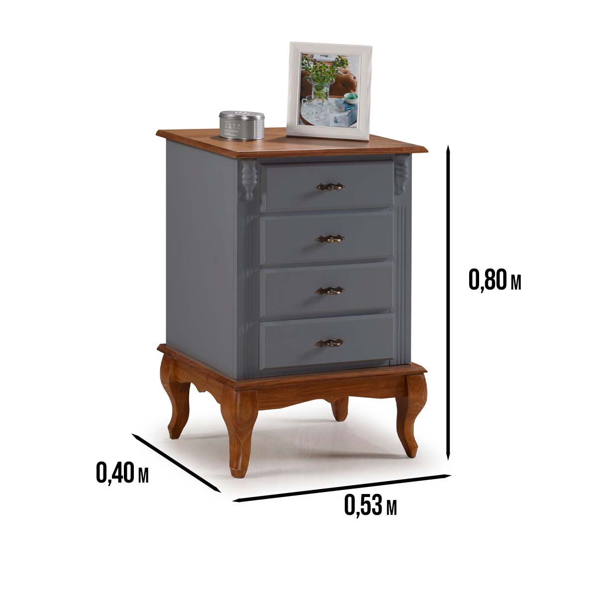 Mesa de cabeceira Linz pés Luis XV 80 x 53 x 40 cm (A x L x P). Criado mudo Linz com pés Luis XV, esta linha é perfeita para dar um upgrade na decoração de seu quarto, suas peças além de serem super versáteis e funcionais, contam com gavetas que facilitam muito o dia a dia e a organização de itens como roupas, livros, roupas de cama e outros, possuem também um design elegante agregando mais sofisticação ao ambiente. São móveis de extrema resistência e durabilidade produzidos em materiais de excelente qualidade. Possui 0,80 m de altura por 0,53 m de largura e 0,40 m de profundidade. A mesa de cabeceira Linz é enviada montada.