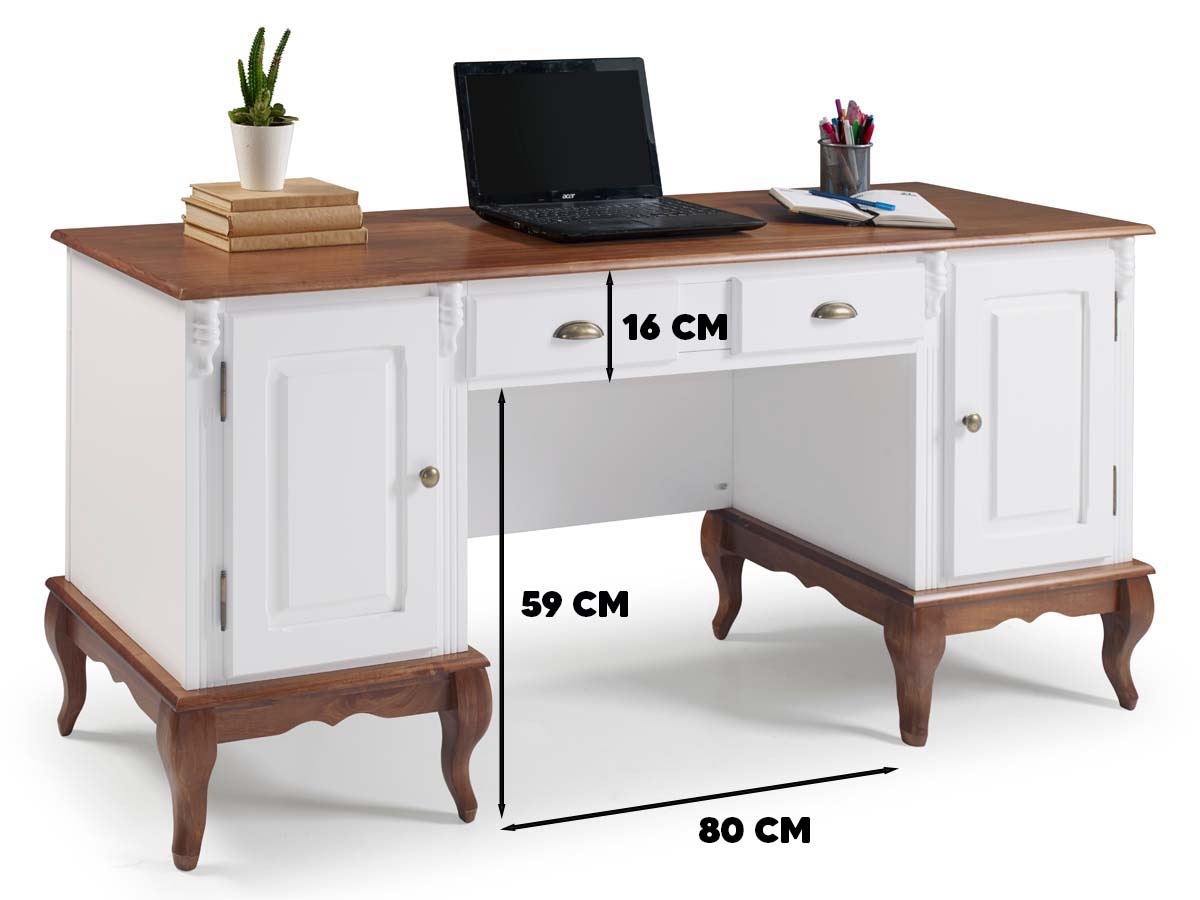 Escrivaninha 2 Portas 2 Gavetas Pés Luis XV Linz Móveis 80 x 176 x 50 cm (A x L x P). As escrivaninhas Linz são peças super resistentes, versáteis e funcionais, possuem 2 gavetas e 2 portas para facilitar a organização de itens. Com design retrô e pés Luis XV são ideias para criar uma decoração diferenciada em escritórios, home offices, salas de atendimento, quartos e outros. Móvel com ótimo acabamento e detalhes divisores de ambiente. Estrutura com pintura laqueada e tampo e base na cor Imbuia Glazer. Possui 0,80 m de altura por 1,76 m de largura e 0,50 m de profundidade. A escrivaninha de madeira é enviada montada.