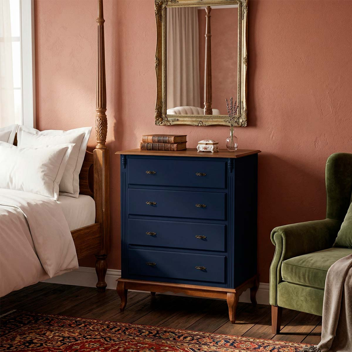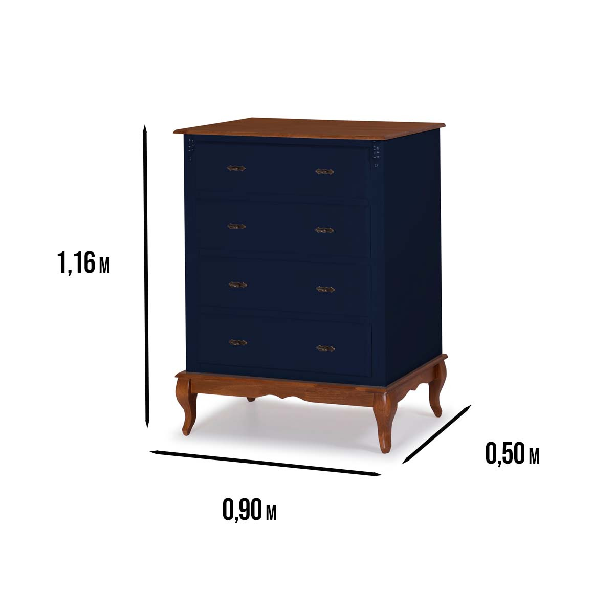 Cômoda de madeira Linz 4 gavetas 116 x 90 x 50 cm (A x L x P). Cômoda Linz com pés Luis XV, esta linha é perfeita para dar um upgrade na decoração de seu quarto, suas peças além de serem super versáteis e funcionais, contam com gavetas que facilitam muito o dia a dia e a organização de itens como roupas, livros, roupas de cama e outros, possuem também um design elegante agregando mais sofisticação ao ambiente. São móveis de extrema resistência e durabilidade produzidos em materiais de excelente qualidade. Possui 1,16 m de altura por 0,90 m de largura e 0,50 m de profundidade. A cômoda Linz é enviada montada.