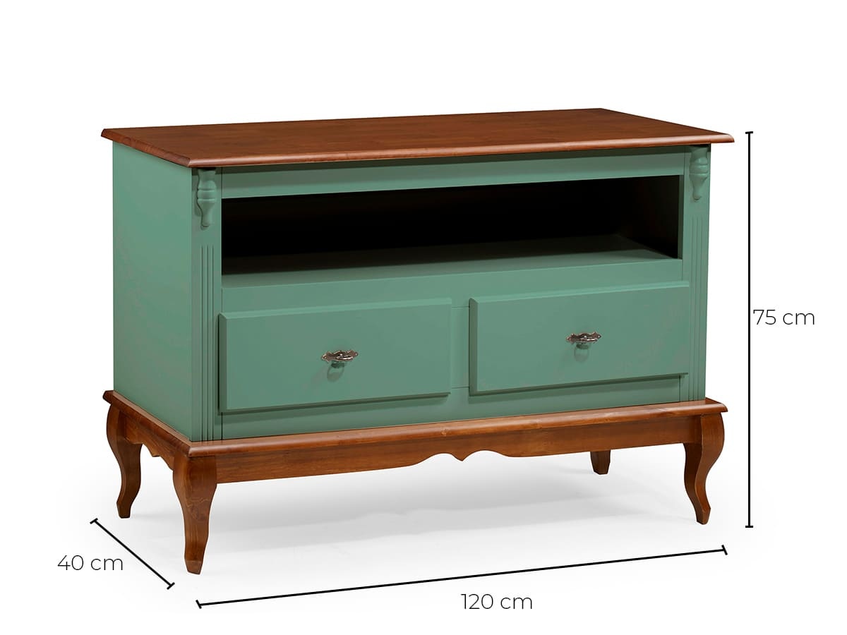 Rack Linz 2 gavetas 75 x 120 x 40 (A x L x P). O rack Linz é fabricado em matéria prima selecionada e de extrema qualidade. Seu design inspirado neoclássico traz classe e requinte ao ambiente. Cuidamos de cada detalhe para criar uma linha exclusiva e diferenciada, que possa ser combinada com diferentes estilos de decoração. Para você que está pensando em redecorar seu espaço, as peças desta linha com certeza são indispensáveis. O rack Linz conta com diversas opções de pintura, duas gavetas, um nicho e pés Luis XV. Possui 0,75 m de altura por 1,20 m de largura e 0,40 m de profundidade. O rack de madeira Linz é enviado montado.