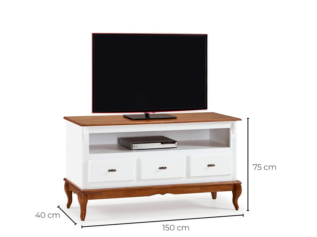 Rack Linz 3 gavetas 75 x 150 x 40 (A x L x P). O rack Linz é fabricado em matéria prima selecionada e de extrema qualidade. Seu design inspirado neoclássico traz classe e requinte ao ambiente. Cuidamos de cada detalhe para criar uma linha exclusiva e diferenciada, que possa ser combinada com diferentes estilos de decoração. Para você que está pensando em redecorar seu espaço, as peças desta linha com certeza são indispensáveis. O rack Linz conta com diversas opções de pintura, três gavetas, um nicho e pés Luis XV. Possui 0,75 m de altura por 1,50 m de largura e 0,40 m de profundidade. O rack de madeira Linz é enviado montado.