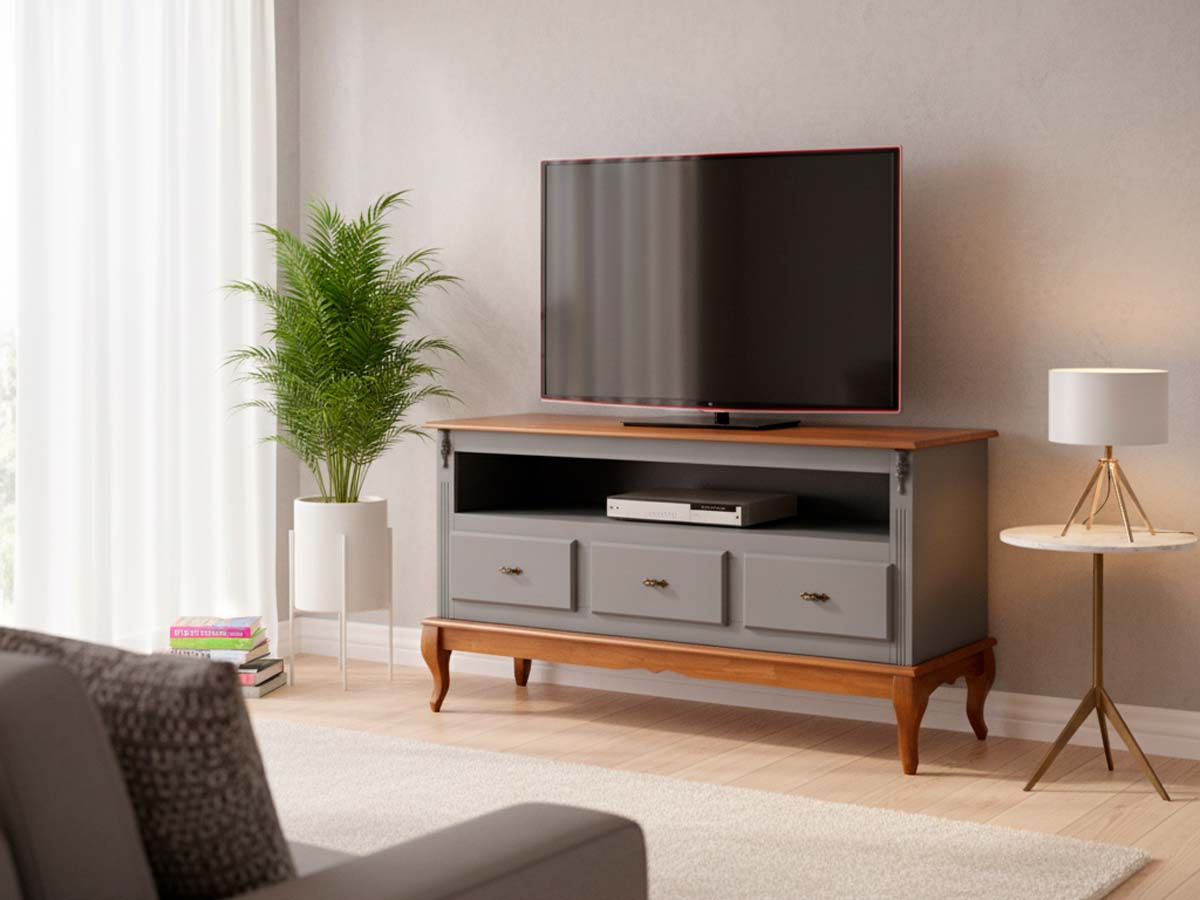 Rack Linz 3 gavetas 75 x 150 x 40 (A x L x P). O rack Linz é fabricado em matéria prima selecionada e de extrema qualidade. Seu design inspirado neoclássico traz classe e requinte ao ambiente. Cuidamos de cada detalhe para criar uma linha exclusiva e diferenciada, que possa ser combinada com diferentes estilos de decoração. Para você que está pensando em redecorar seu espaço, as peças desta linha com certeza são indispensáveis. O rack Linz conta com diversas opções de pintura, três gavetas, um nicho e pés Luis XV. Possui 0,75 m de altura por 1,50 m de largura e 0,40 m de profundidade. O rack de madeira Linz é enviado montado.