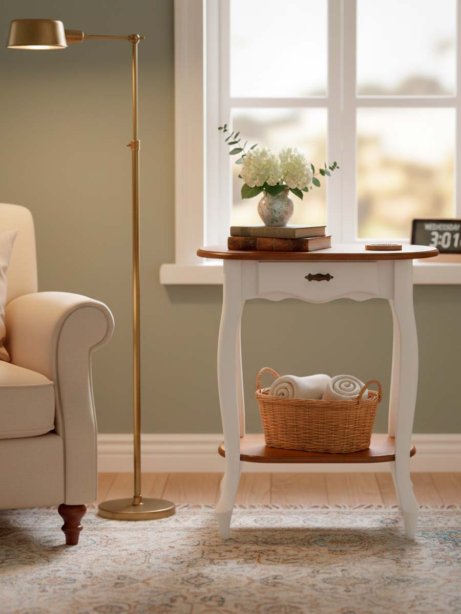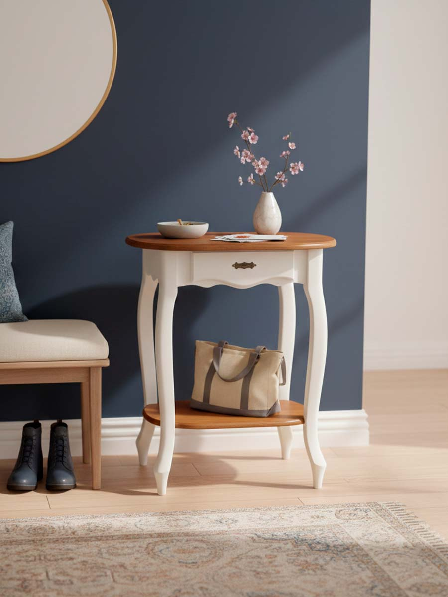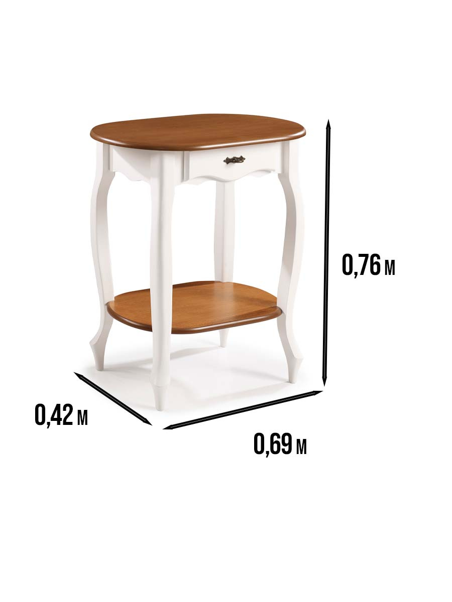 Mesa de apoio lateral oval com gaveta 76 x 69 x 42 cm (A x L x P). Mesa de apoio com 1 gaveta e prateleira baixa, é ideal para compor a sala de estar. A linha Hanover possui o design inspirado no estilo alemão, seus traços neoclássicos chamam atenção e se destaca em qualquer decoração, conta com diversas opções de pintura e puxador em metal injetado. Possui 0,76 m de altura, 0,69 m de largura e 0,42 m de profundidade. A mesa de apoio é enviada montada.