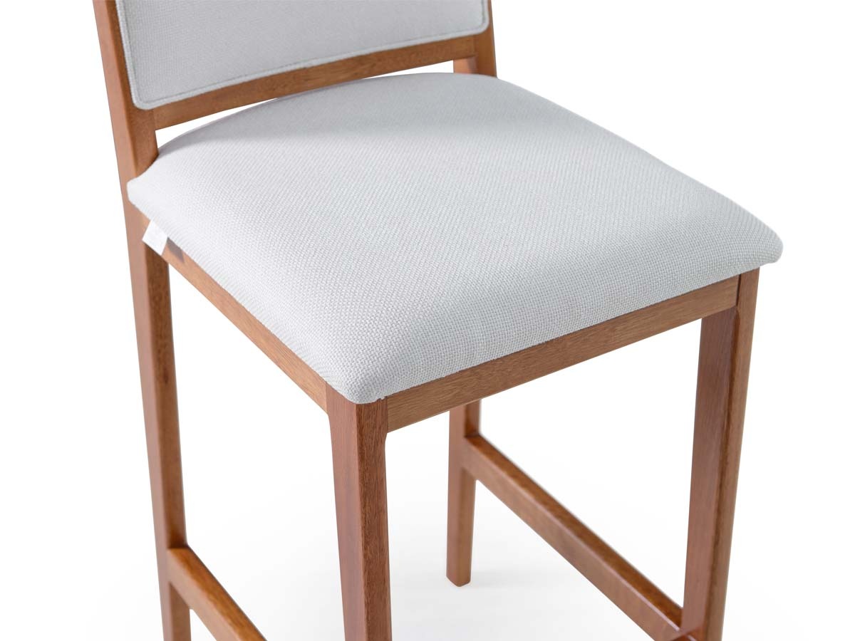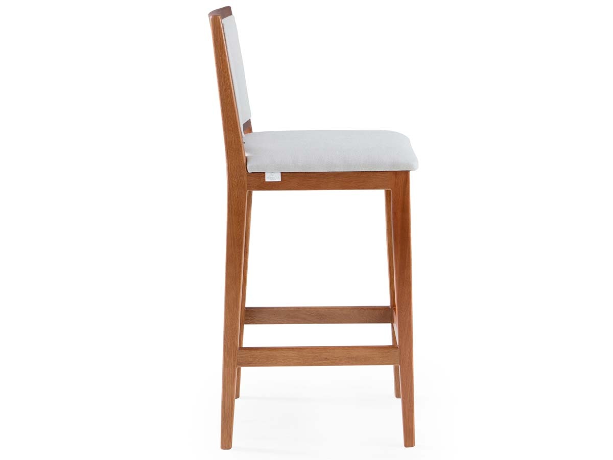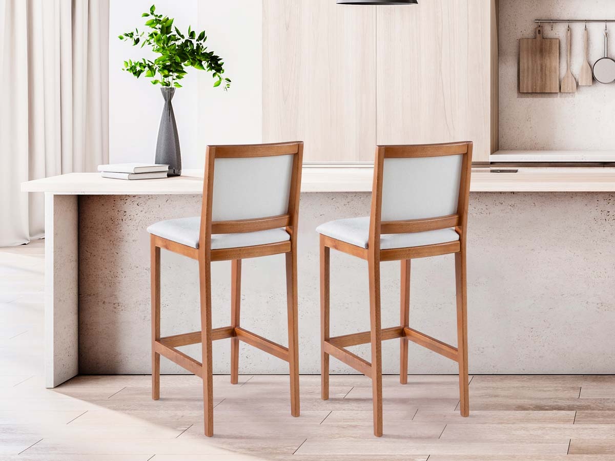 Banqueta Turqueza fixa de madeira encosto em estofado 103 x 45 x 39 cm (A x L x P). A banqueta Turqueza possui encosto estofado e estrutura fabricada em madeira maciça de eucalipto acrescentando charme e robustes à peça. Conta com encosto vazado proporcionando maior conforto ao sentar. Possui 1,03 m de altura e 0,45 m de largura e 0,39 de profundidade. A banqueta alta Turqueza é enviada montada