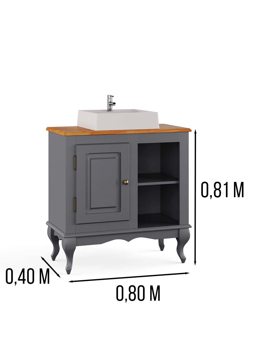 Balcão para banheiro com cuba pés Luis XV 1 porta 2 nichos Dalia 81 x 80 x 40 cm (A x L x P). Balcão de madeira possui uma porta, dois nichos e pés Luis XV é ideal para compor o banheiro, acompanha a cuba. Estrutura com pintura laqueada podendo ser personalizável. Cuidamos de cada detalhe para criar uma linha exclusiva e diferenciada, que possa ser combinada com diferentes estilos de decoração. Para você que está pensando em redecorar seu espaço, as peças desta linha com certeza são indispensáveis. Possui 0,81 m de altura por 0,80 m de largura e 0,40 m de profundidade. A balcão é enviado montado.