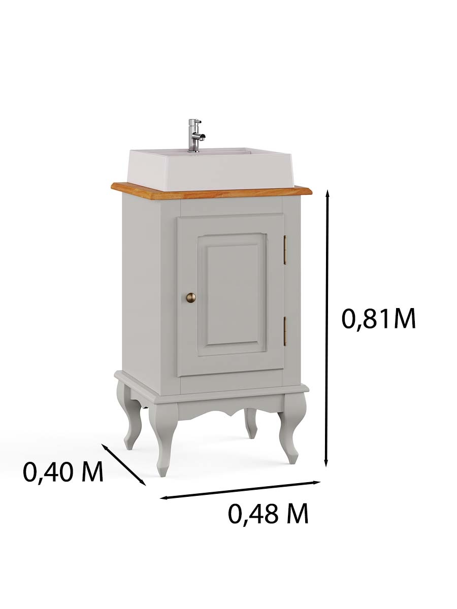 Balcão para banheiro com cuba pés Luis XV 1 porta Dalia 81 x 48 x 40 cm (A x L x P). Balcão de madeira possui uma porta e pés Luis XV é ideal para compor o banheiro, acompanha a cuba. Estrutura com pintura laqueada podendo ser personalizável. Cuidamos de cada detalhe para criar uma linha exclusiva e diferenciada, que possa ser combinada com diferentes estilos de decoração. Para você que está pensando em redecorar seu espaço, as peças desta linha com certeza são indispensáveis. Possui 0,81 m de altura por 0,48 m de largura e 0,40 m de profundidade. A balcão é enviado montado.